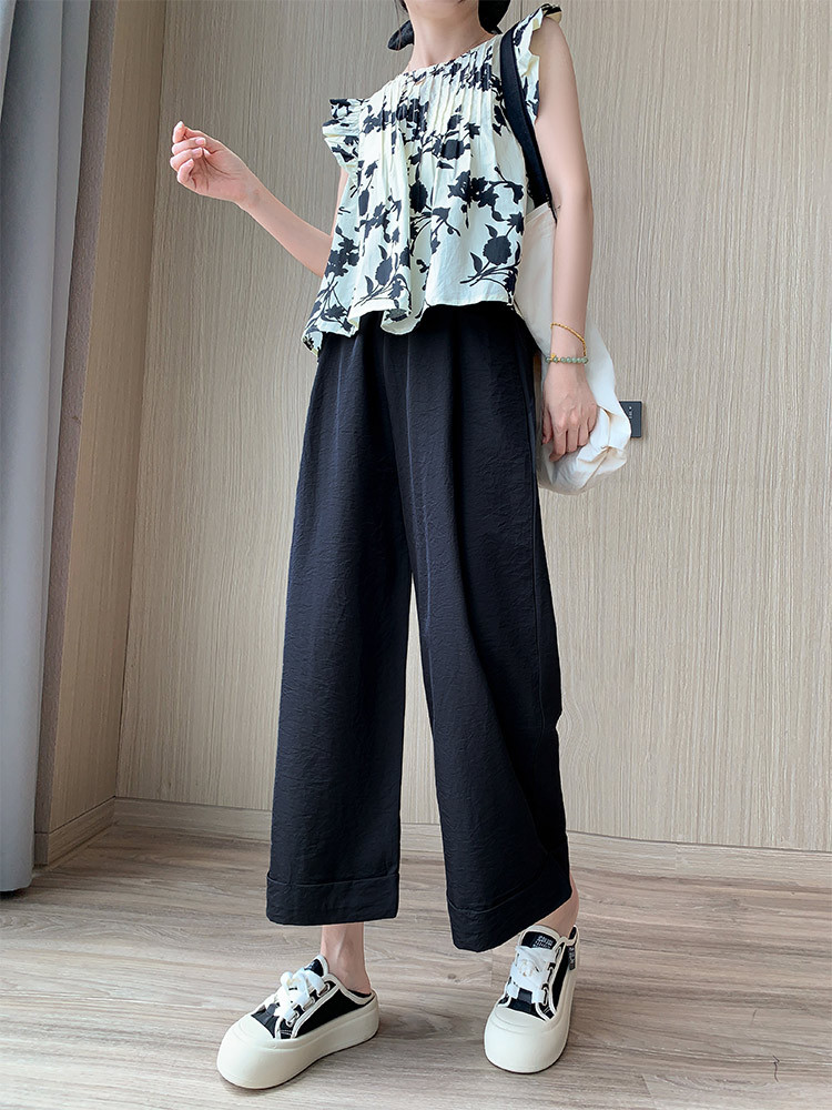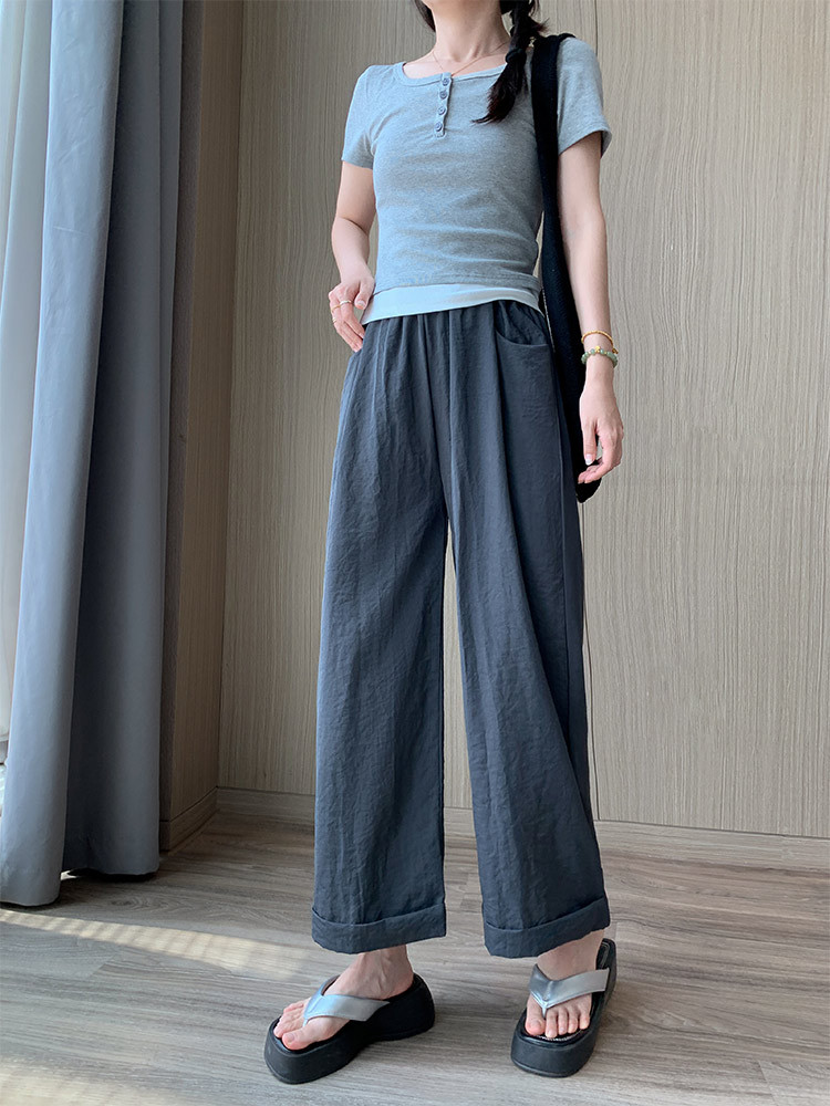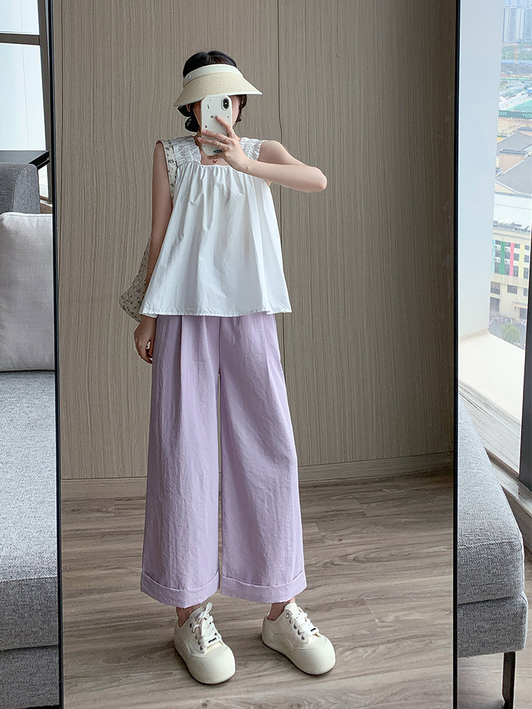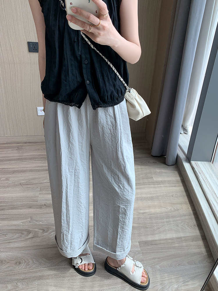 奶绿色奶奶裤女夏季新款高腰阔腿抗皱宽松萝卜休闲直筒九分裤
