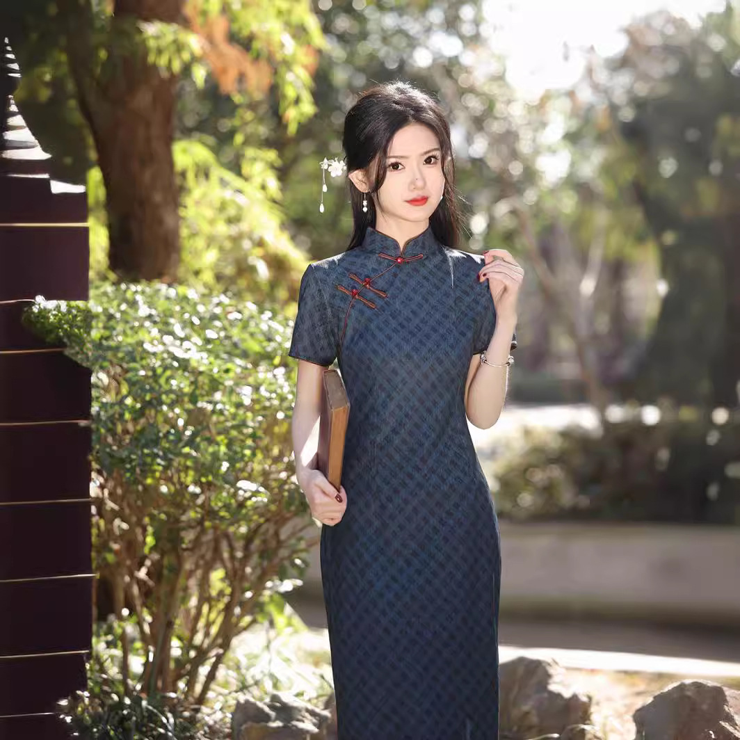 老上海复古民国风长款改良旗袍春夏新款收腰显瘦连衣裙