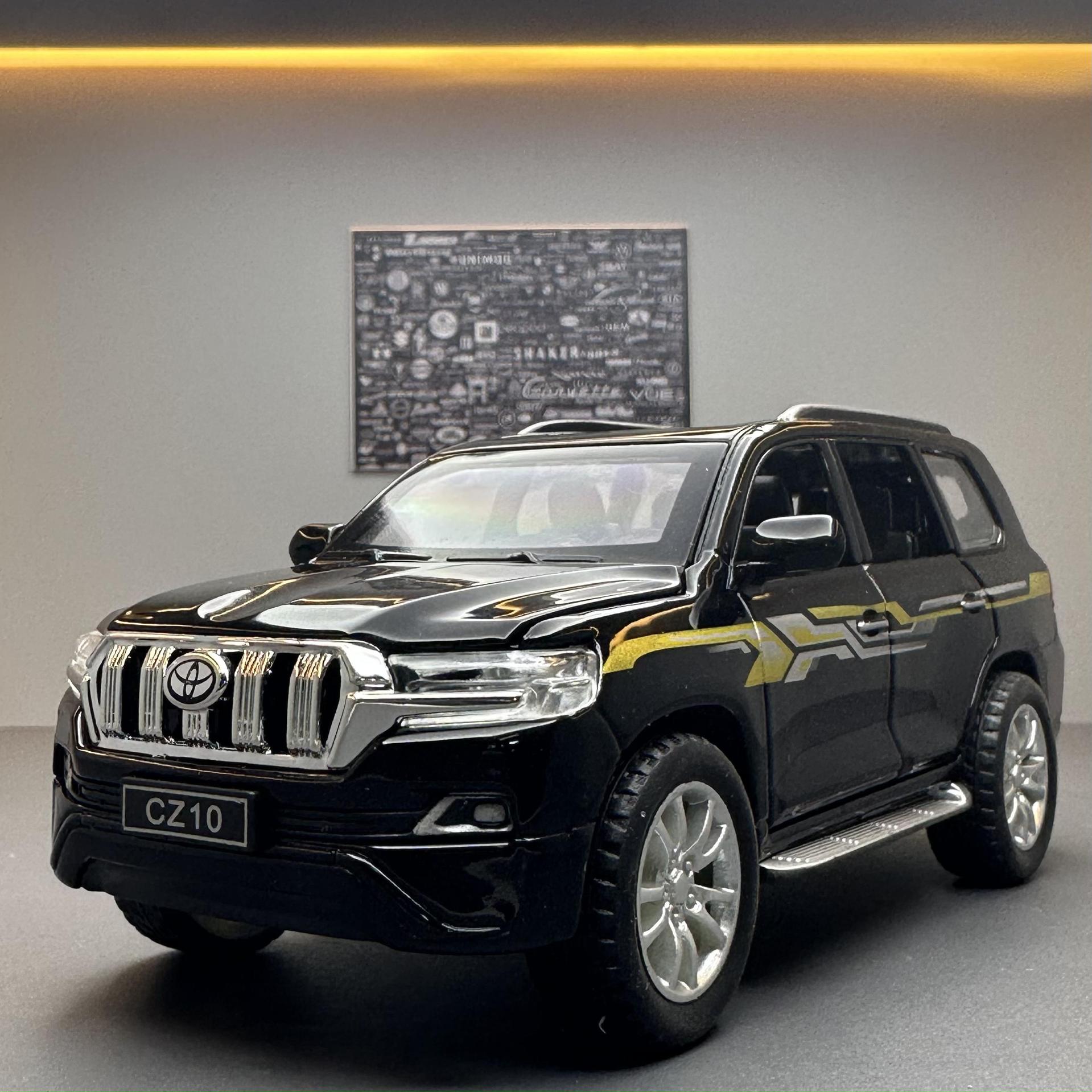 车致合金车模1:32普拉多越野车回力带声光玩具车音乐模型摆件藏品