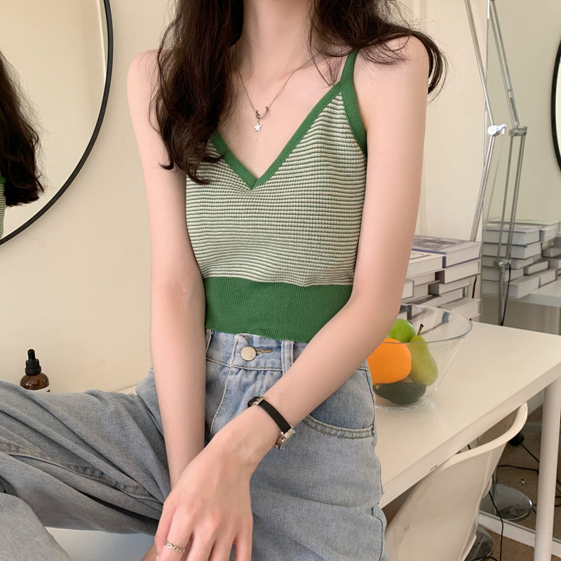 针织背心女外穿夏季美背v领设计感小众内搭短款无袖小吊带上衣潮