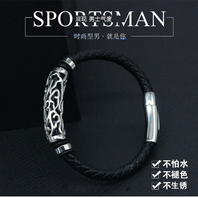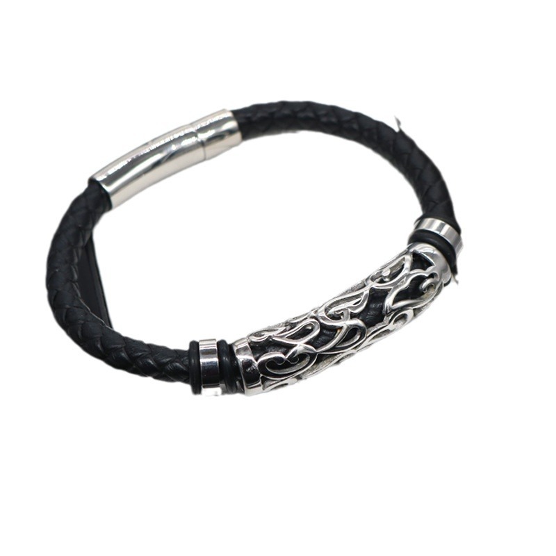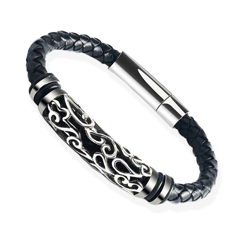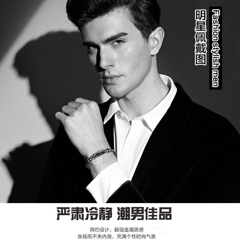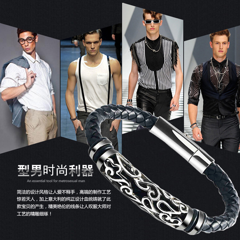 个性霸气编织皮绳手链男士钛钢手环复古潮男饰品配饰韩版手链