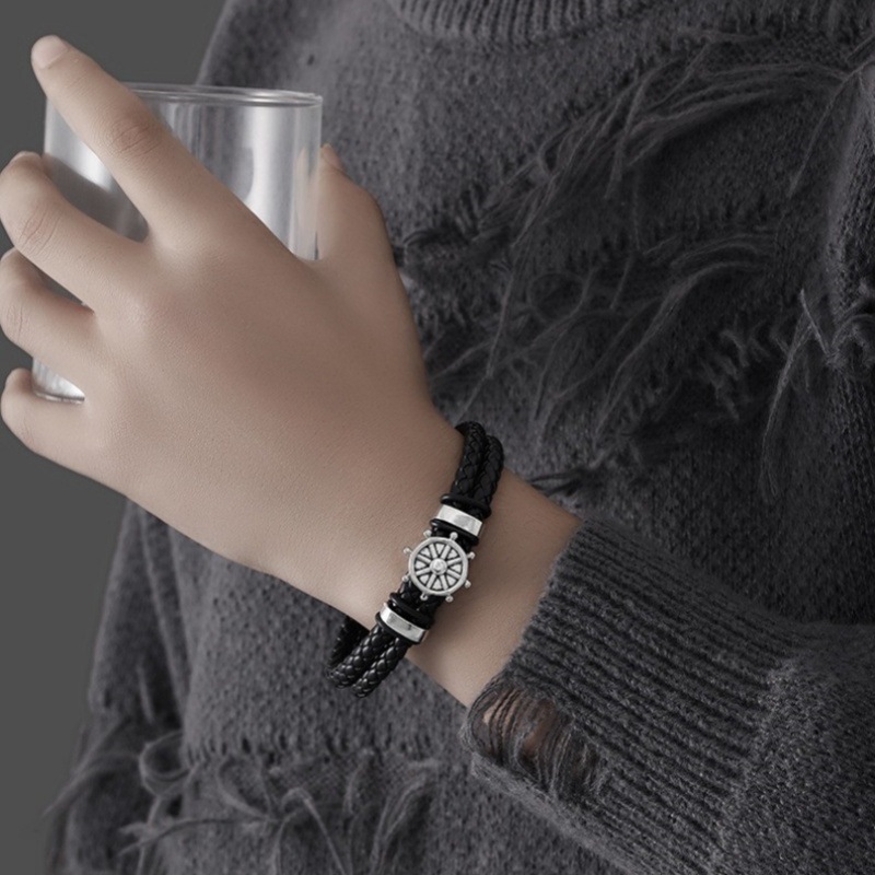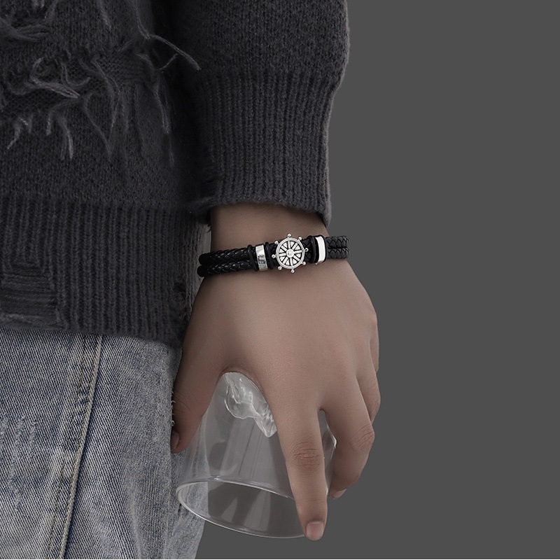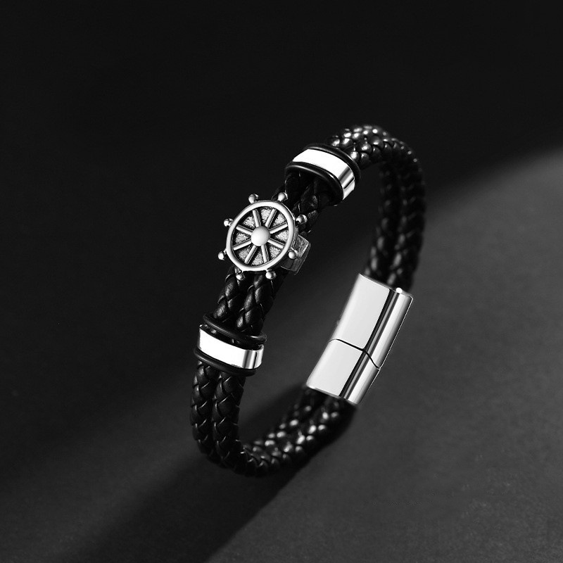 钛钢船舵手链男款高级感轻奢小众皮绳编制手环个性简约痞帅男手饰