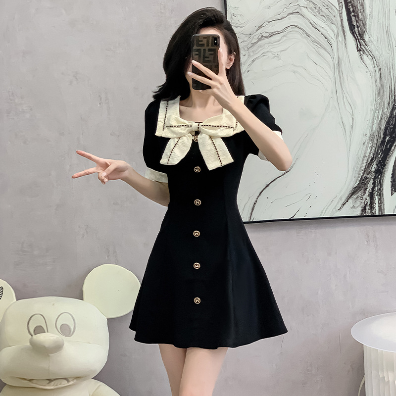 大码微胖女生法式蝴蝶结显瘦连衣裙女小众设计感胖mm梨型身材裙子