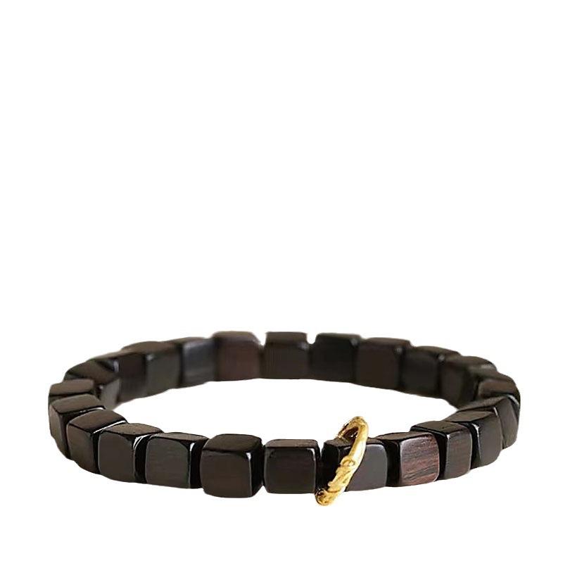 天然黑檀木方块手串男精致小巧小众简约高级感国风配饰女藏式盘玩