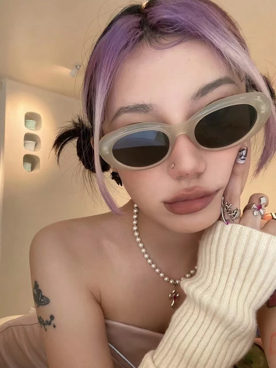 复古小众猫眼辣妹gm墨镜JENNIE同款嘻哈小框太阳眼镜女高级感ins