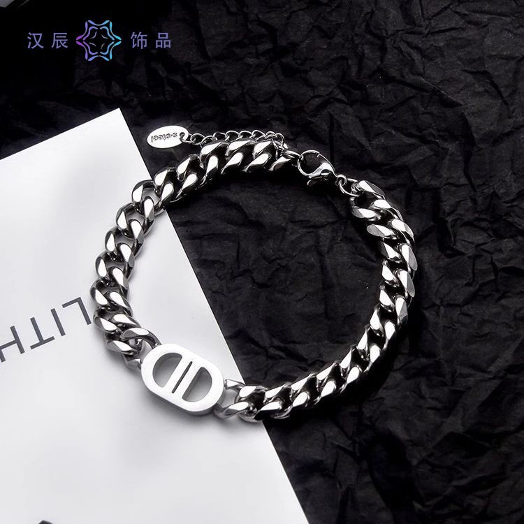 双D钛钢手链不掉色新款嘻哈小众简约高级感饰品男