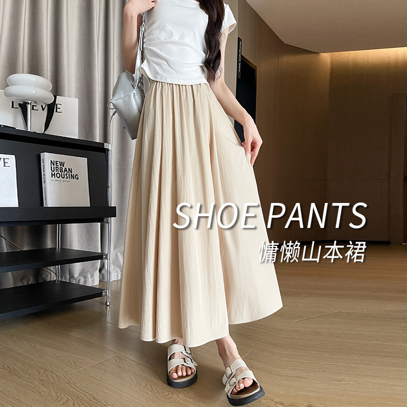 冰丝褶皱山本裙女夏季薄高腰A字中长款伞裙慵懒风垂感百褶半身裙