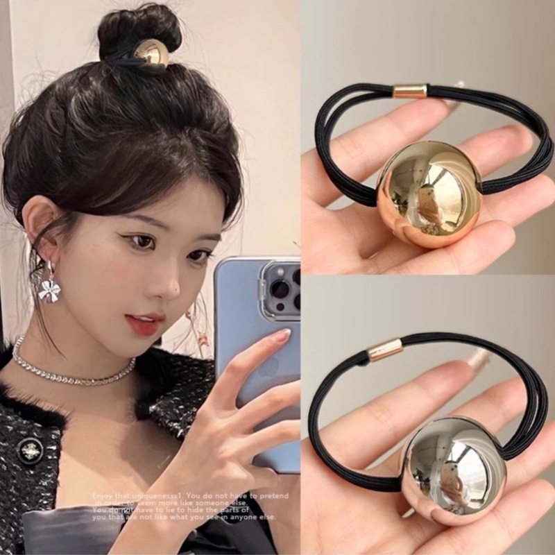 韩版高级冷淡风发绳银色圆球球皮筋网红博主款扎头绳马尾发圈发饰