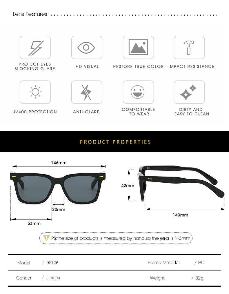 欧美风时尚方框太阳镜男士防紫外线铆钉小框墨镜女潮流眼镜