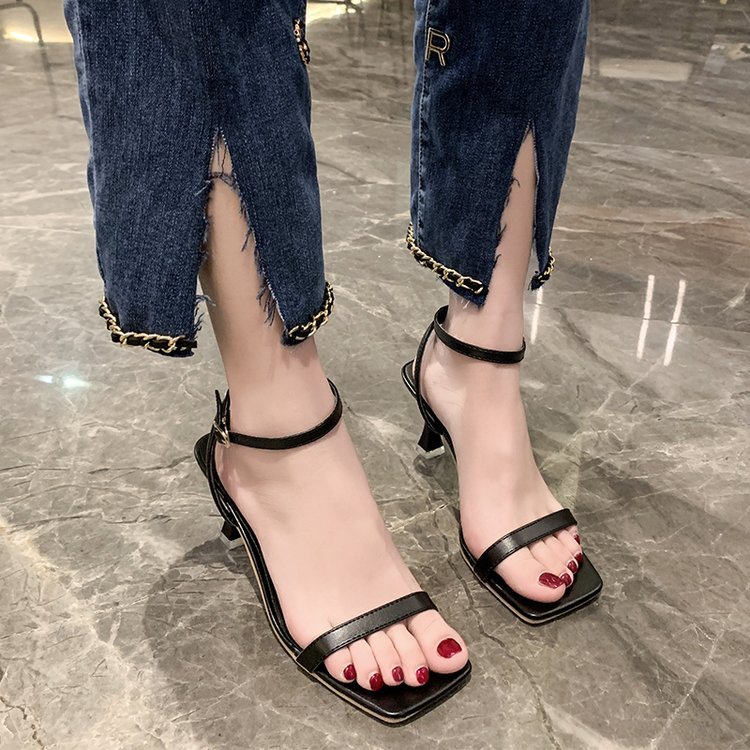 夏季新款韩版细跟凉鞋女方头露趾一字扣带时尚大码高跟鞋