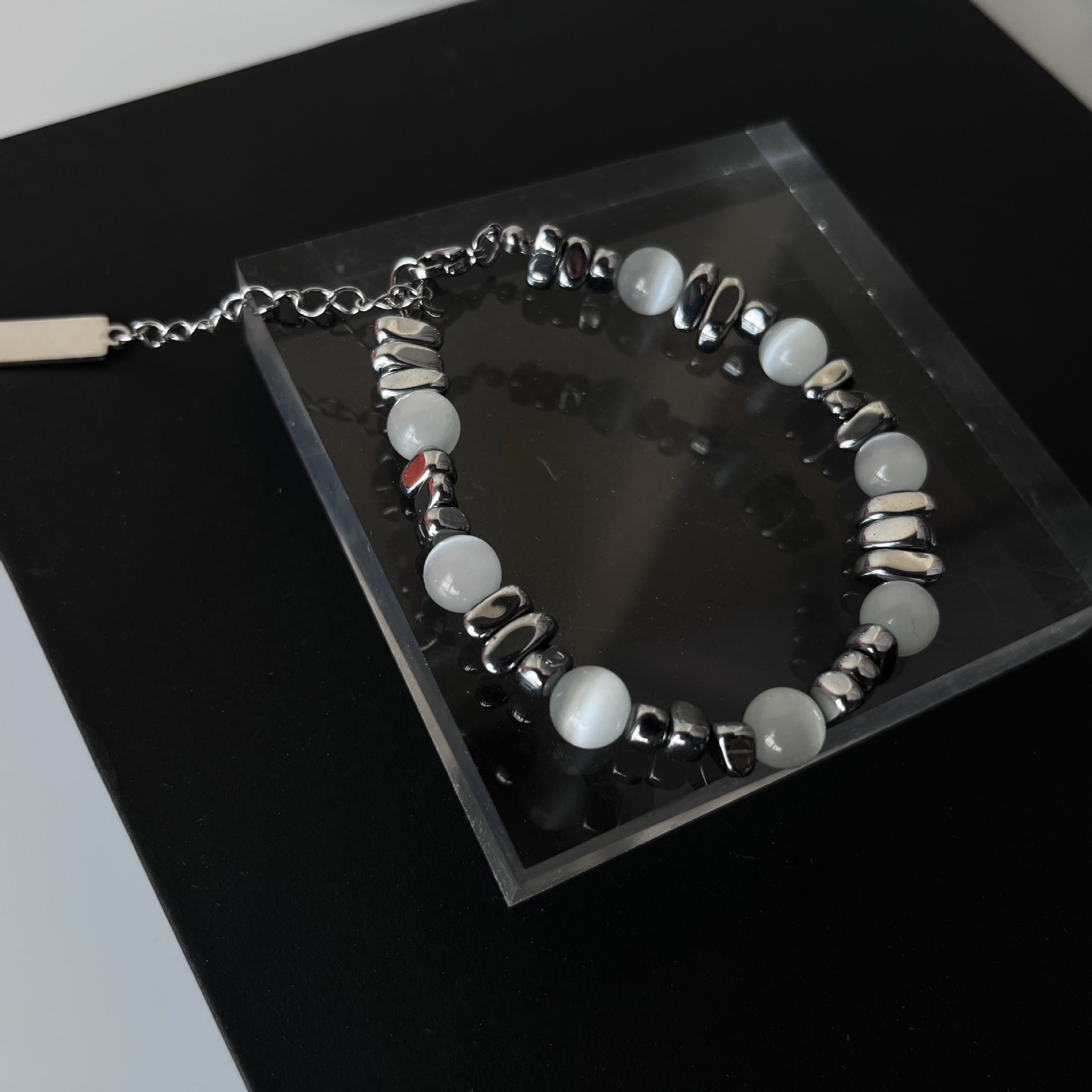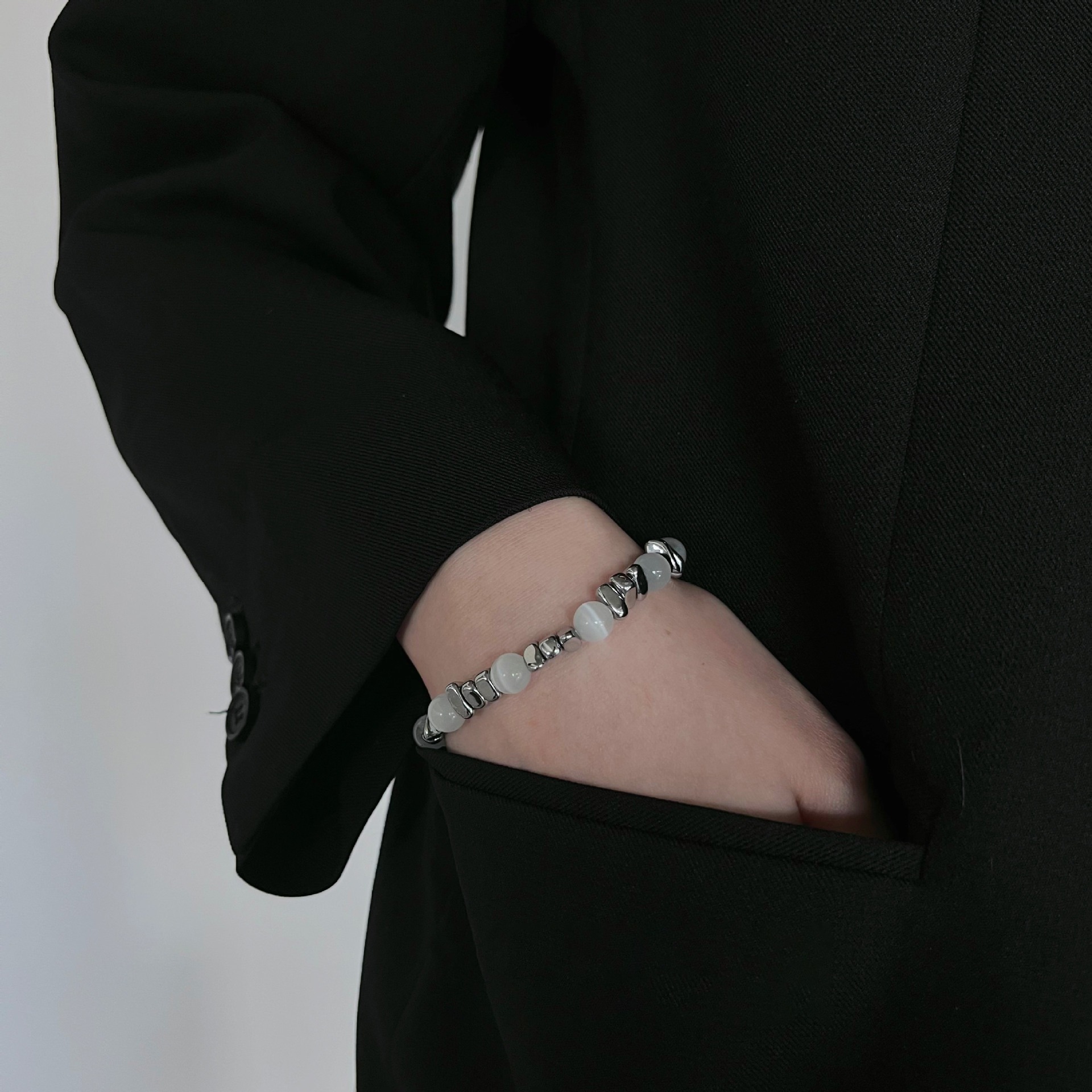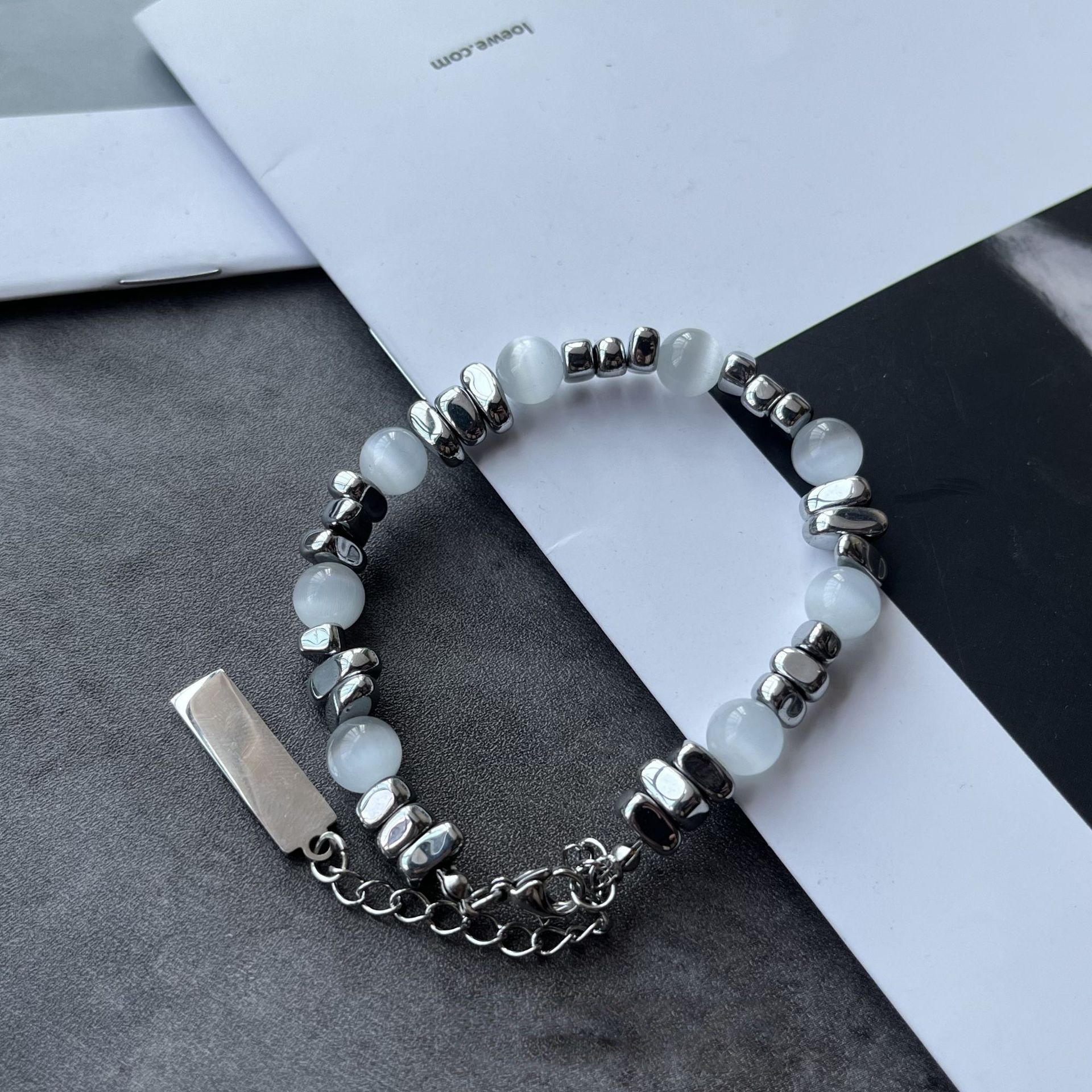 猫眼石手链不掉色男潮简约高级感珍珠手串钛钢设计小众情侣手饰女