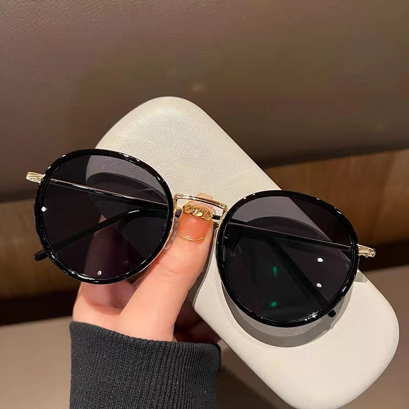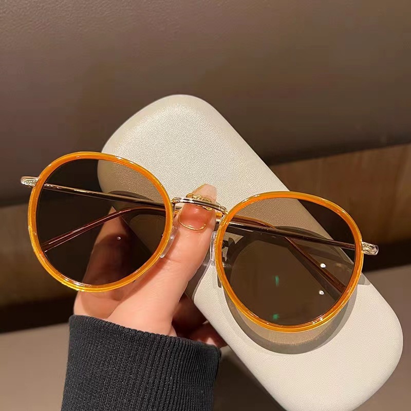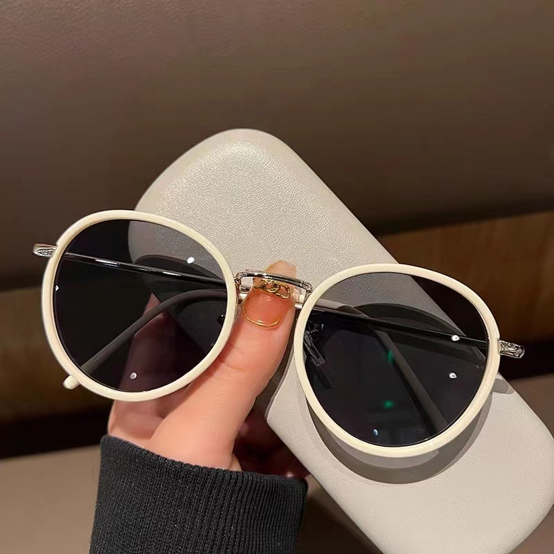 复古圆框ins风太阳镜新款小脸白色素颜镜网红款韩版墨镜海边