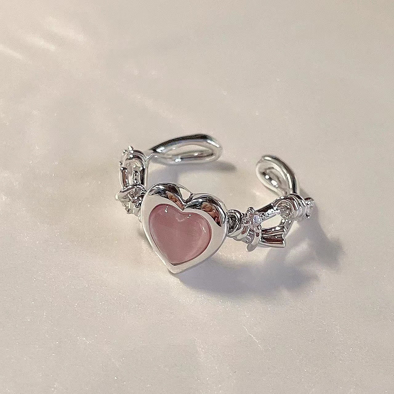 新款个性爱心猫眼石荆棘戒指女式食指活口戒指环小众设计感