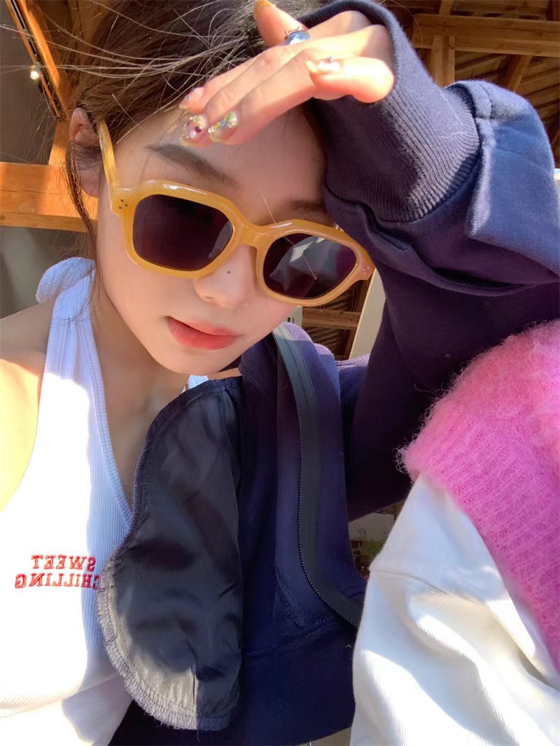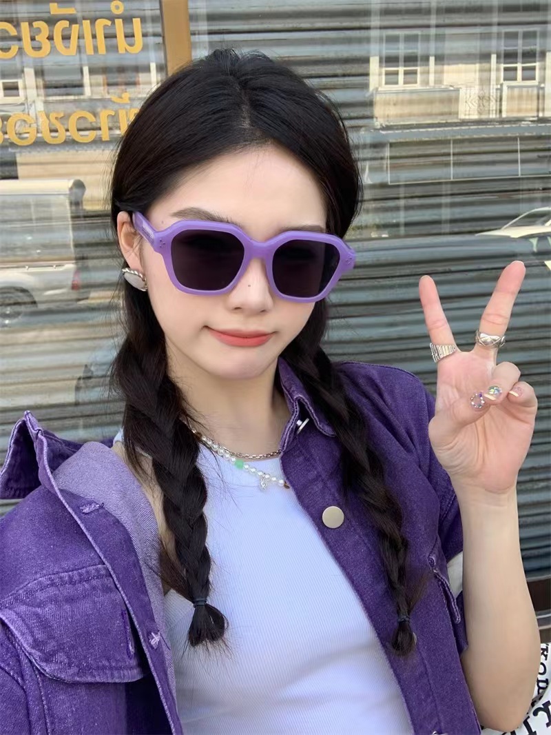 网红米钉方形太阳镜千禧风紫色复古高级感ins街拍素颜墨镜女