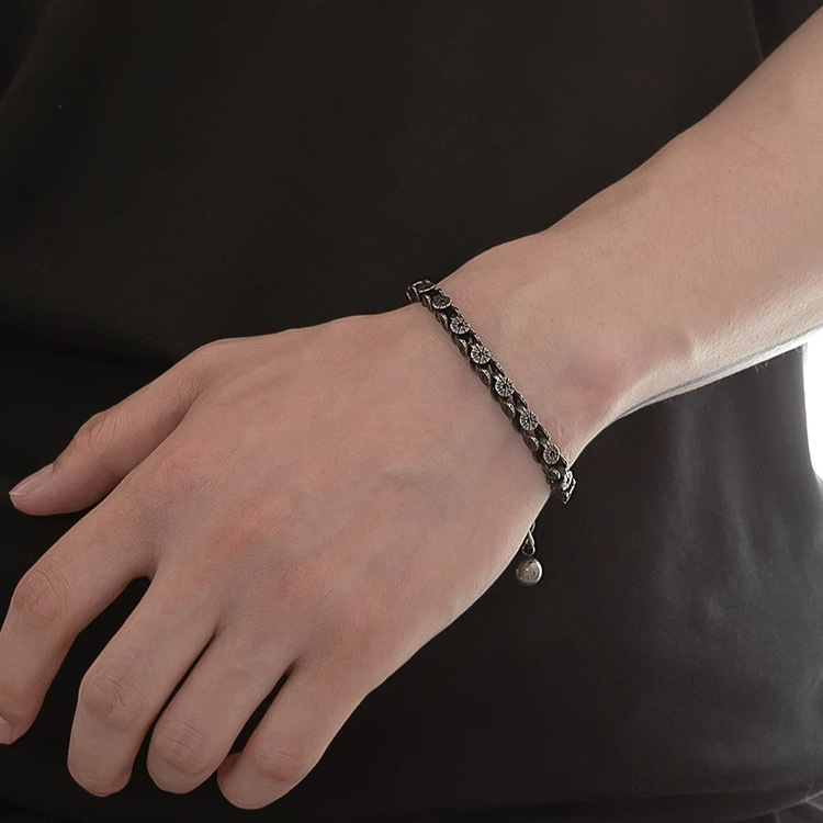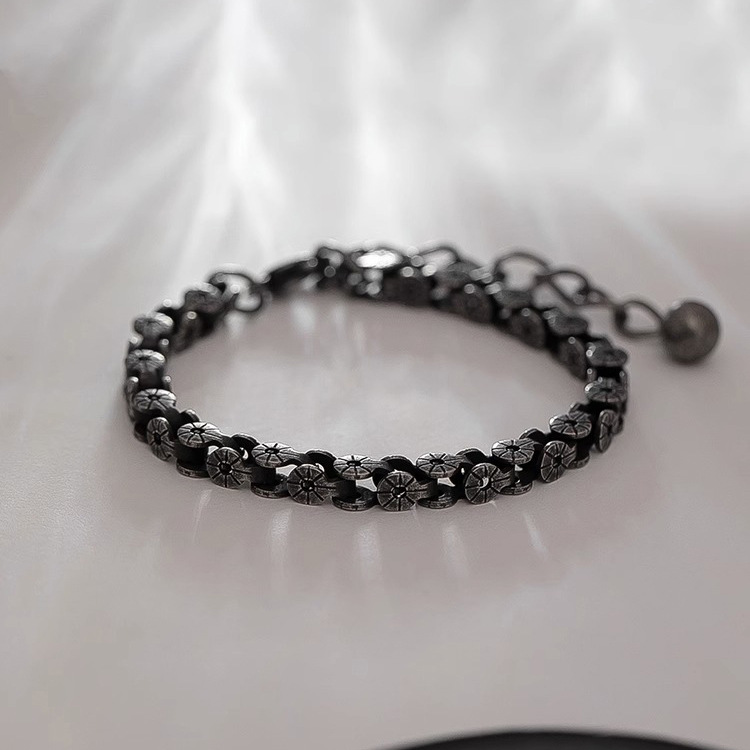钛钢复古做旧手链男嘻哈个性配饰方形朋克冷淡风男士简约百搭饰品