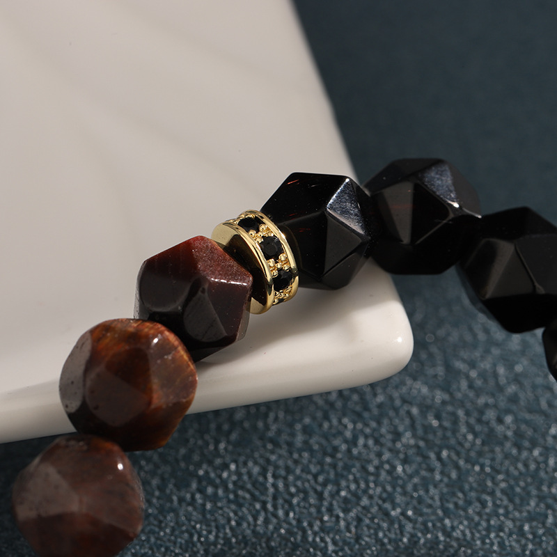黑曜石菱行手串不掉色高级感简约百搭饰品切面手链珠子女配饰首饰
