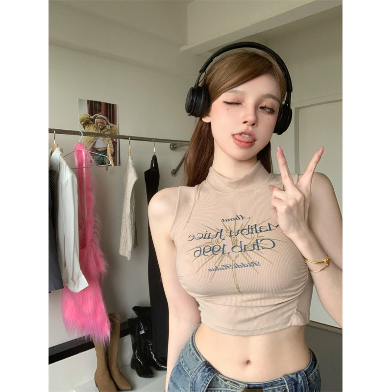 纯欲别致独特美式复古辣妹短款露脐背心外穿修身小众无袖上衣女