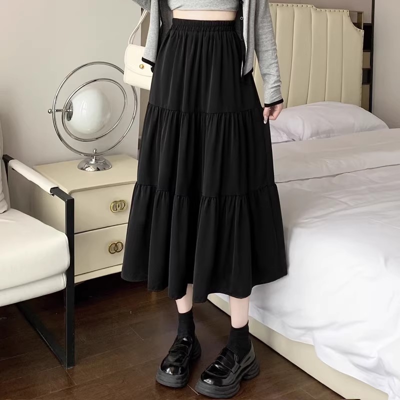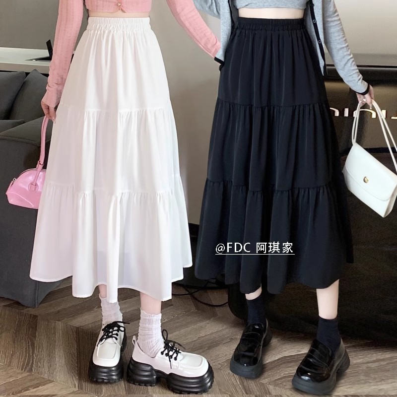 春夏新款百褶半身裙女气质高腰中长款a字裙遮胯显瘦仙女长裙