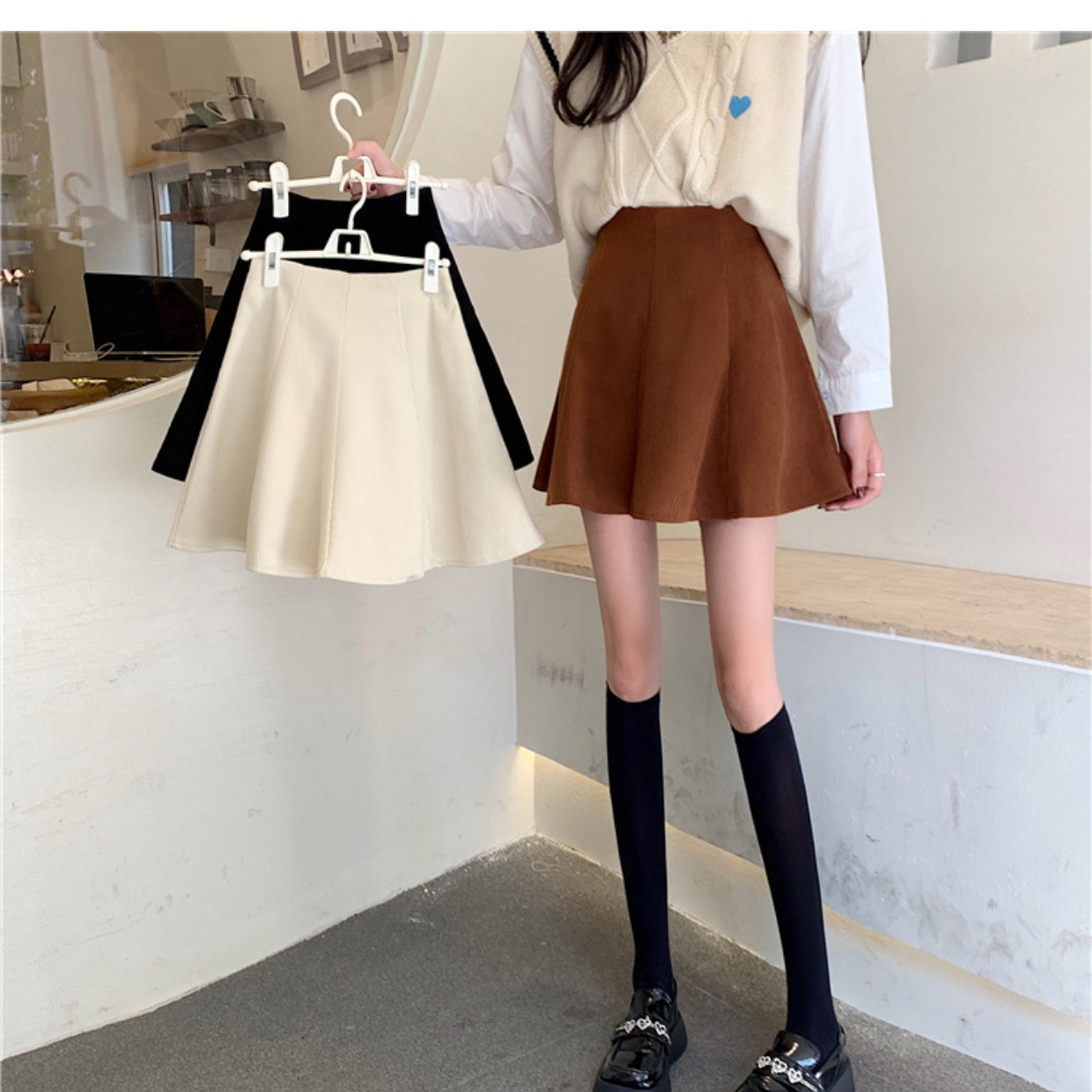 新款高腰显瘦灯芯绒裙子女生年新款洋气伞裙款a字短裙防走光