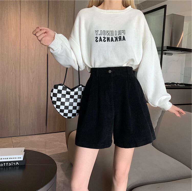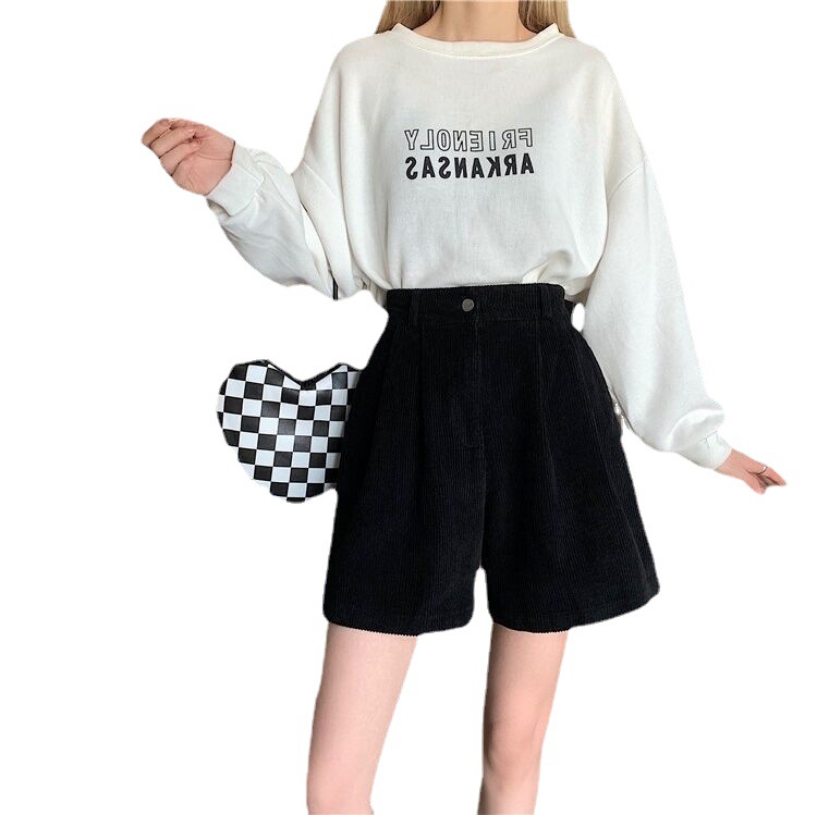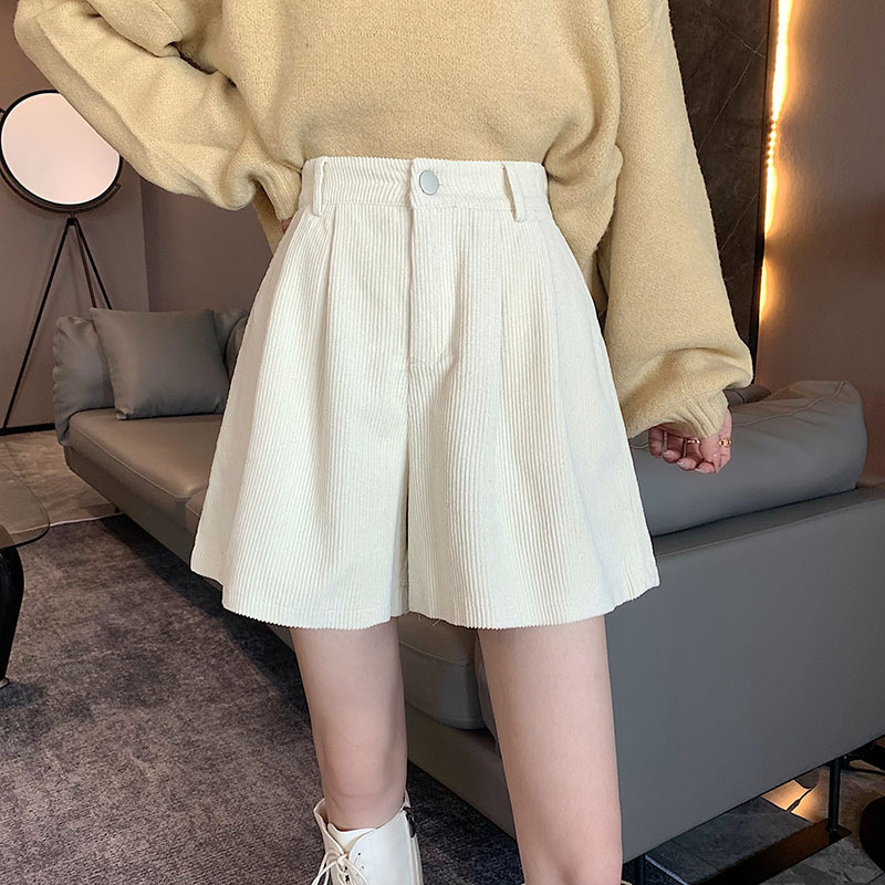 新款配长靴的灯芯绒短裤女秋冬高腰显瘦a字裤小个子外穿打底靴裤