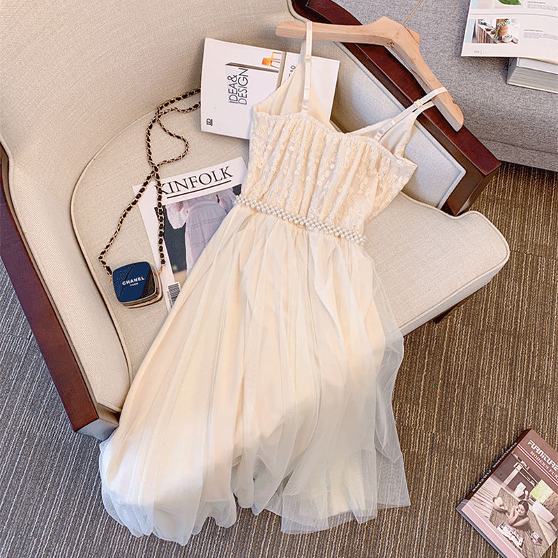 吊带连衣裙女夏季收腰显瘦高级感法式新款气质洋气网纱长裙子