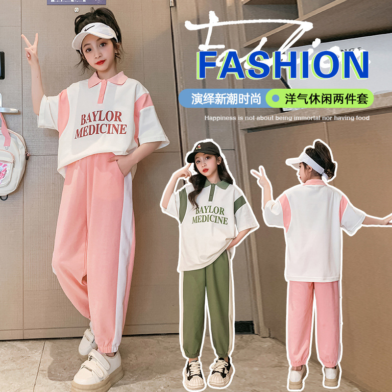 女童套装夏装儿童短袖Polo领T恤衫夏季防蚊裤大童运动两件套