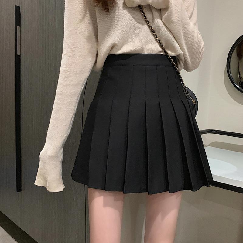 春秋季黑色短裙新款气质百褶半身裙女装网红显瘦高腰A字裙子