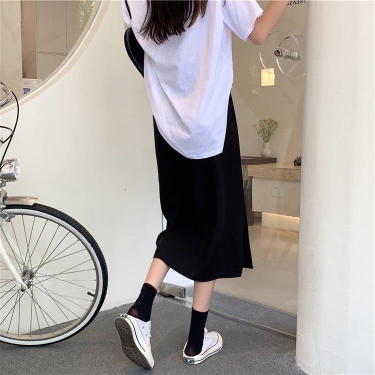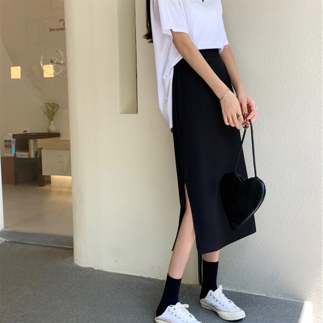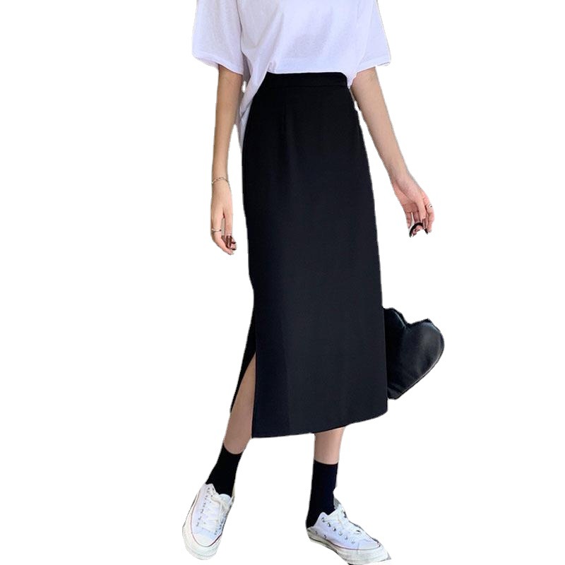 秋天款A字版高腰半身裙女一步开叉遮胯显瘦中长款黑色包臀裙