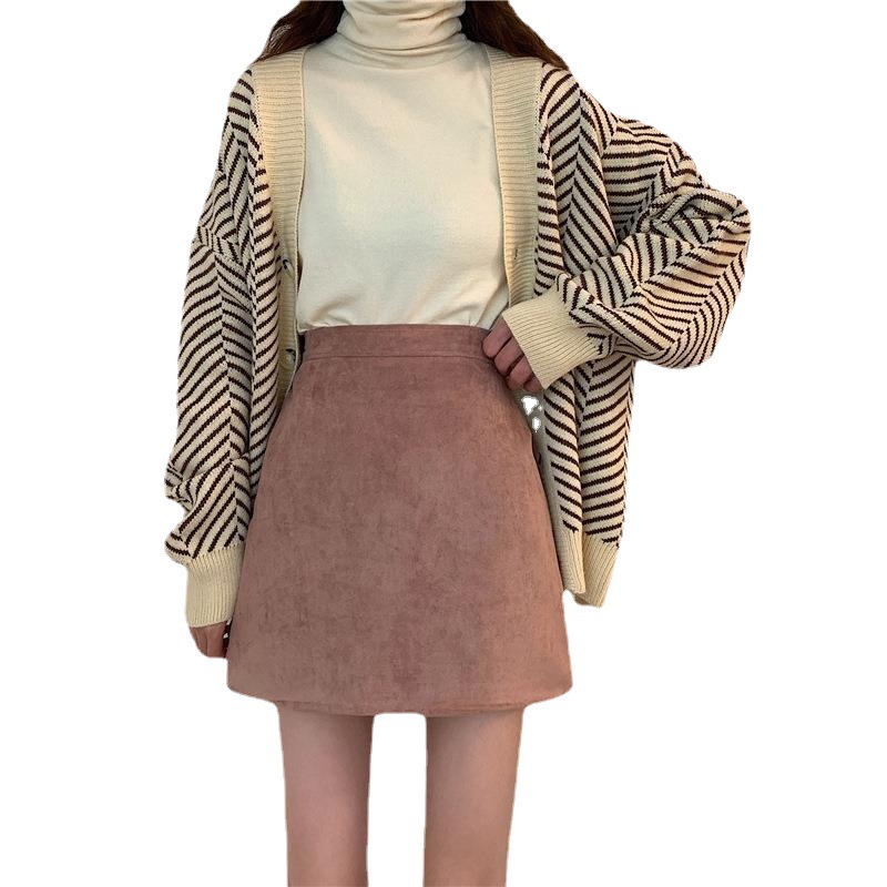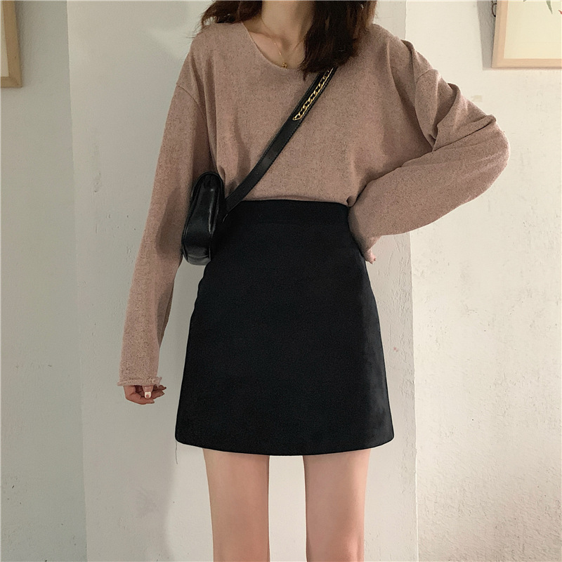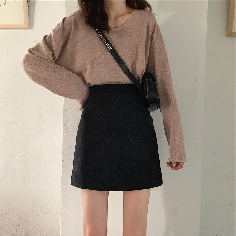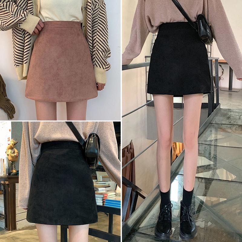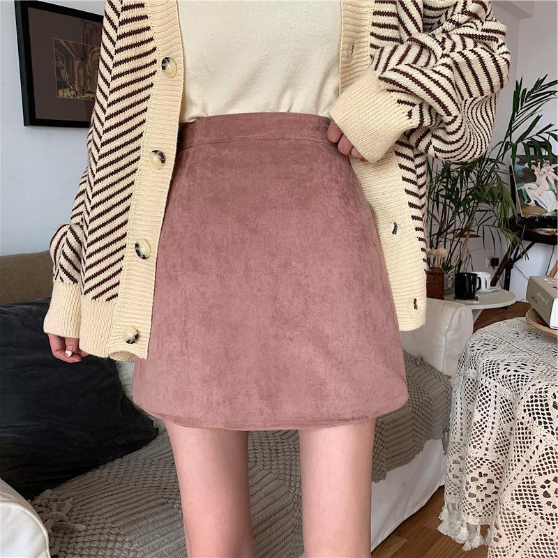鹿皮绒半身裙女A字短裙新款秋冬季包臀裙一步裙高腰显瘦裙子