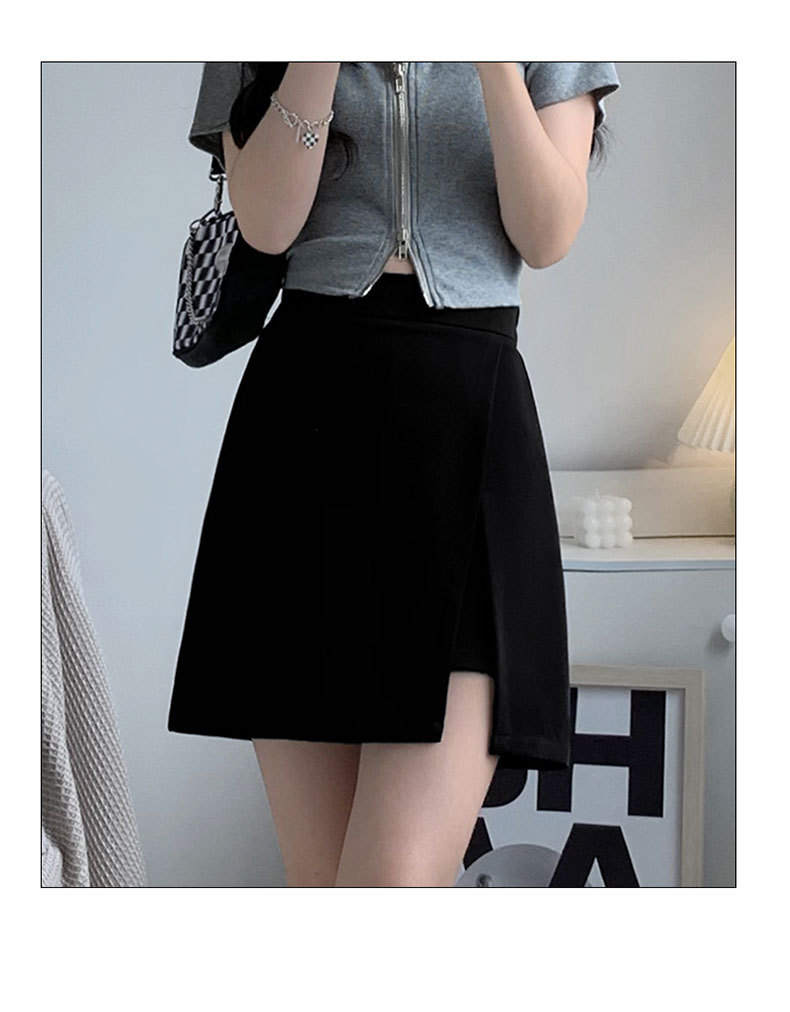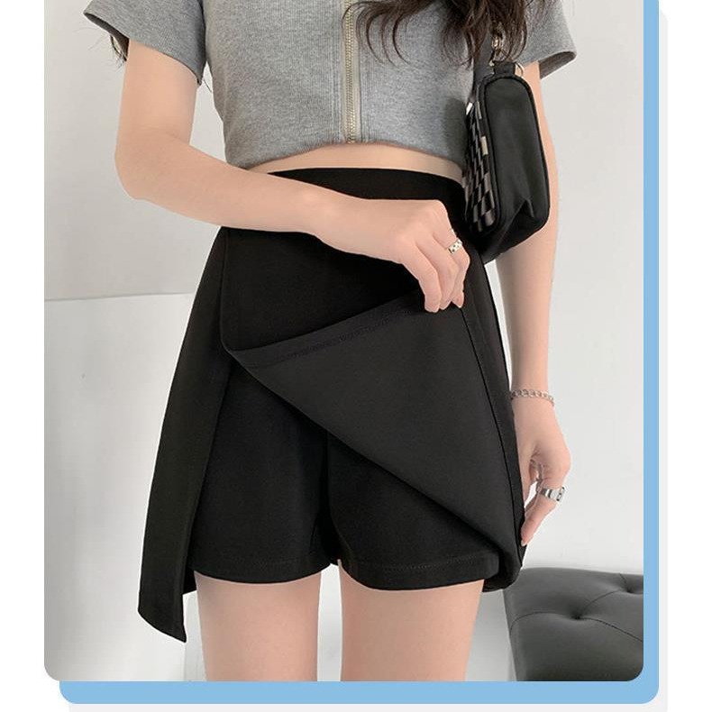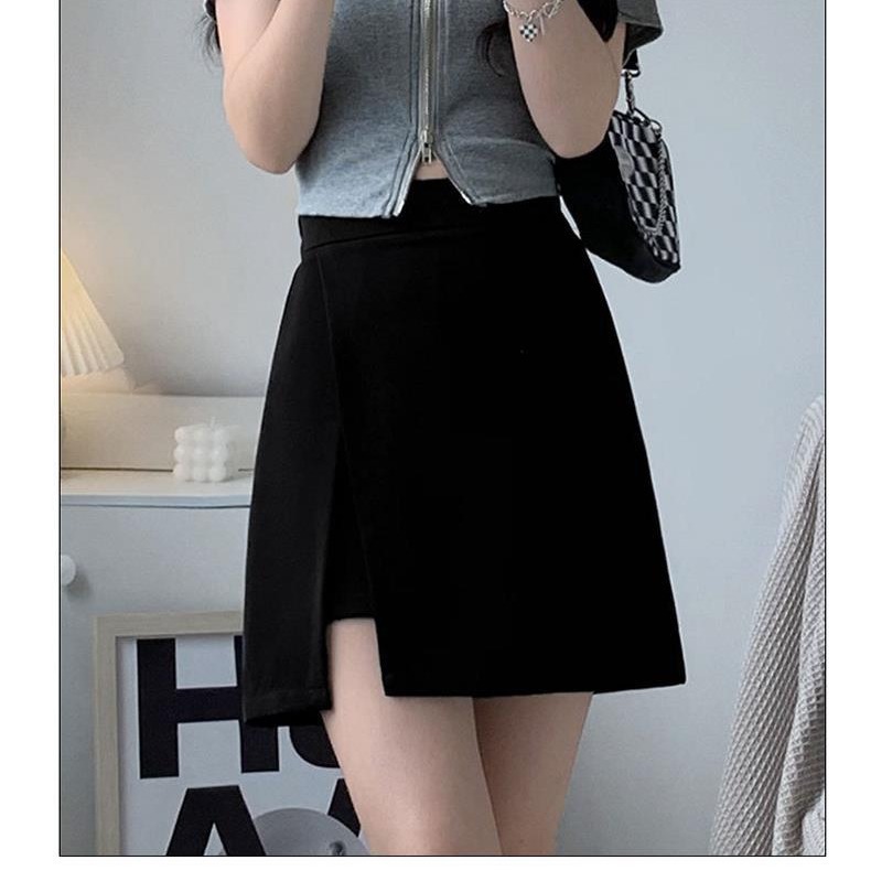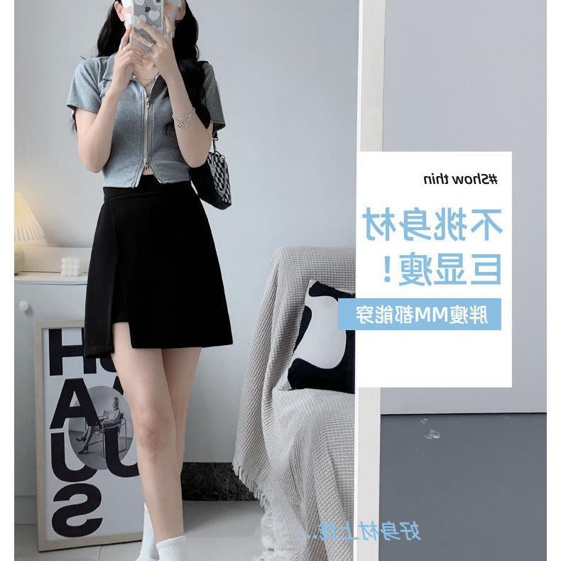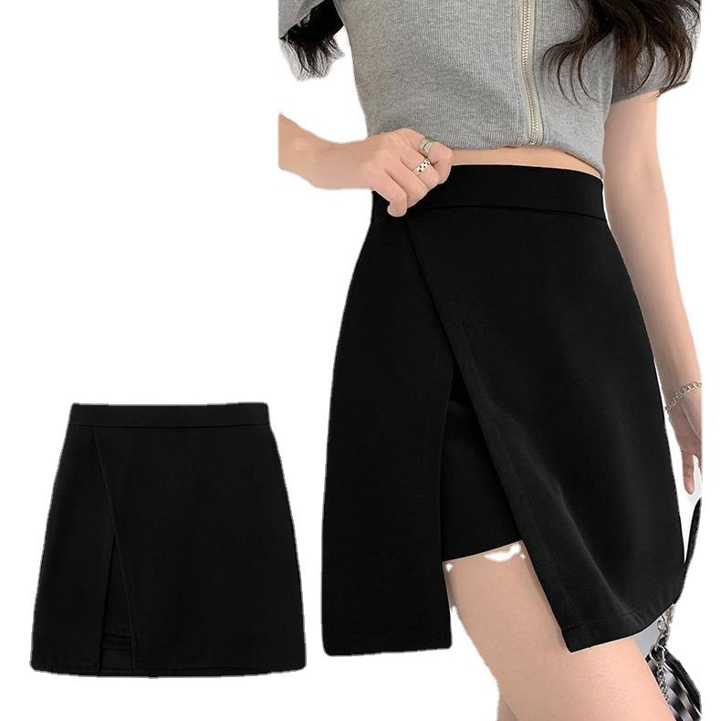 黑色短裙女夏防走光开叉西装半身裙裤高腰显瘦a字大码包臀短裤裙