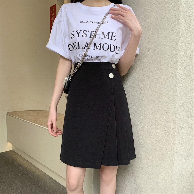 百褶裙女生款女夏季百搭A字裙大码包臂遮肚子中裙不规则半身裙裤