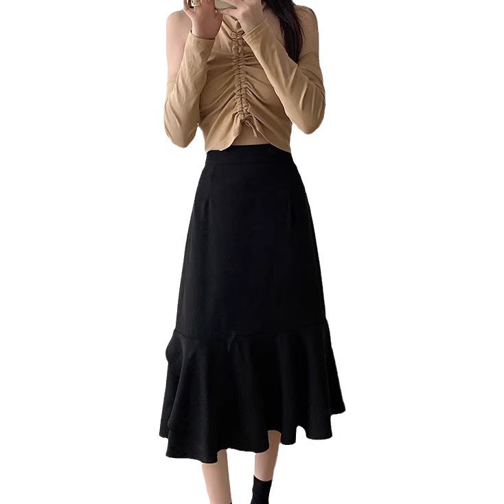大码秋冬小个子中长款不规则西装鱼尾裙胖妹妹高腰遮胯显瘦半身裙