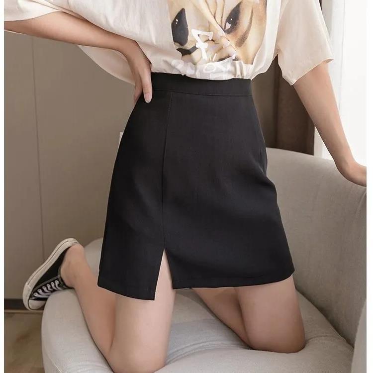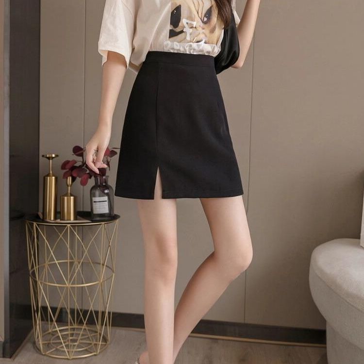 学院风气质开叉包臀短裙女防走光a字裙夏高腰修身显瘦半身裙