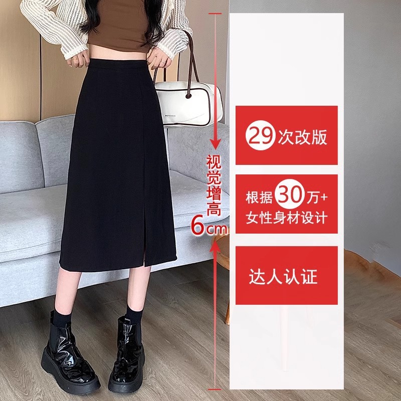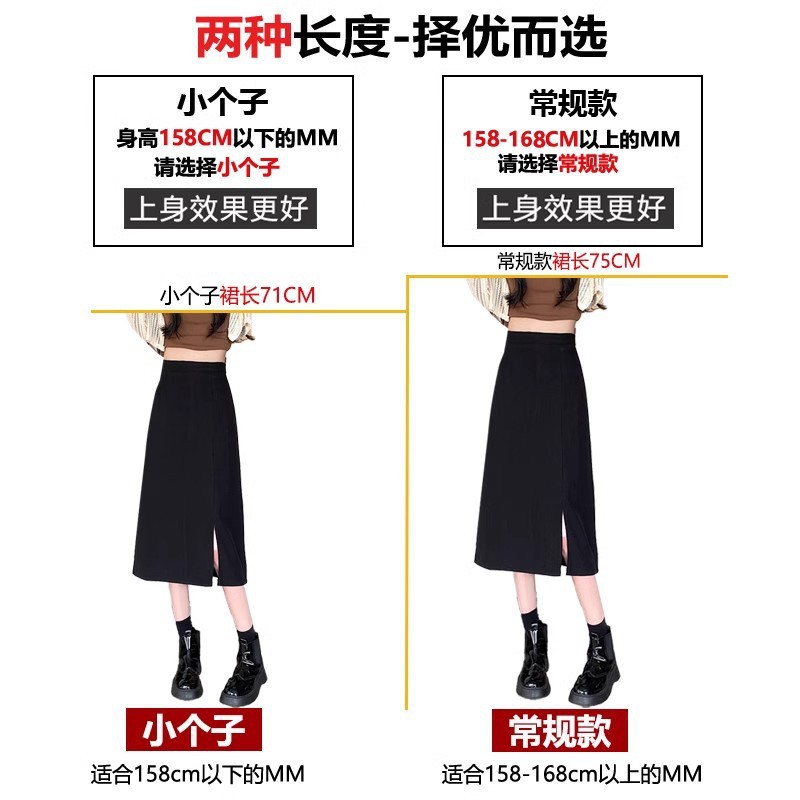 大码夏季年中长款半身裙女高腰胖mm开叉A字裙一步黑色包臀裙