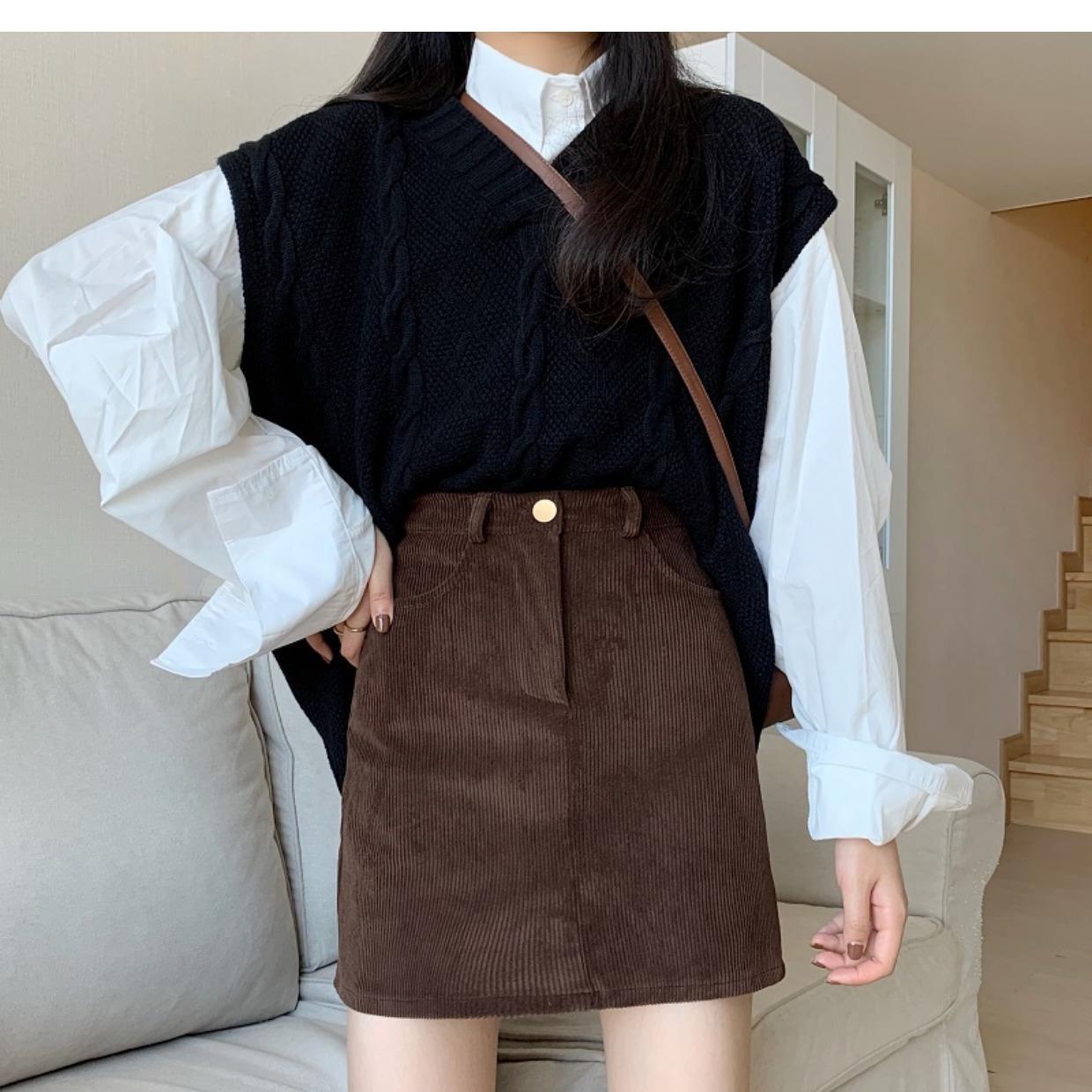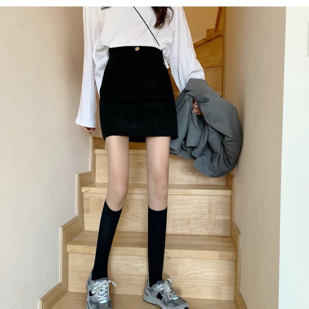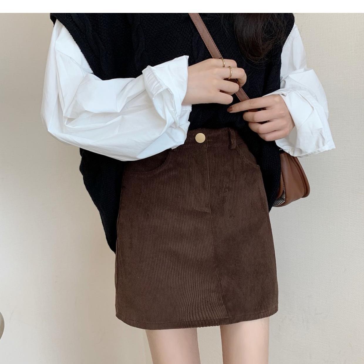 简约百搭秋冬季高腰显瘦灯芯绒裙子女年新款洋气款a字半身裙