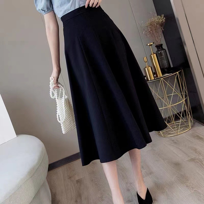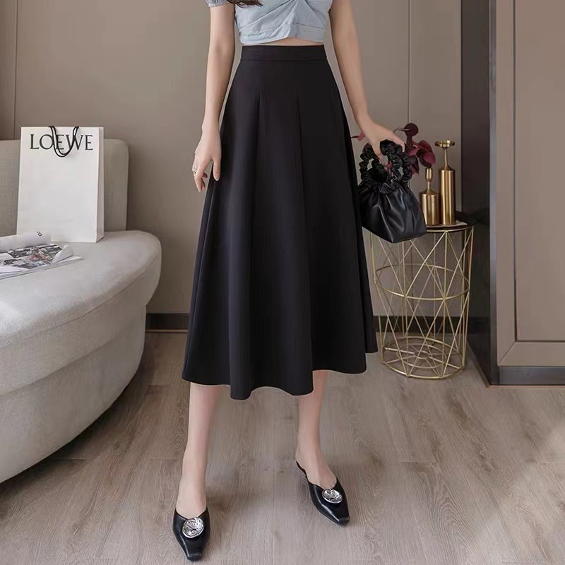 半身裙女夏年新款时尚a字蓬蓬伞裙中长款遮跨显瘦高腰百褶裙