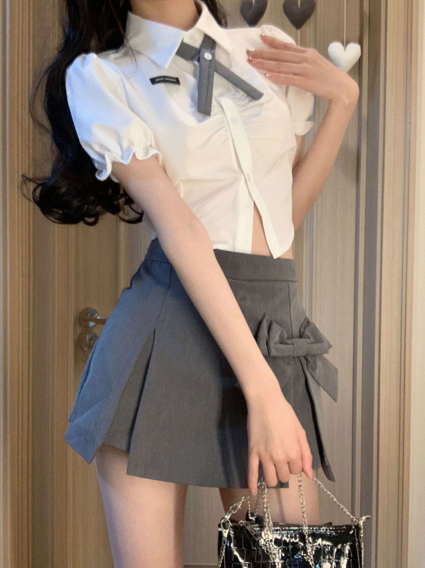 蝴蝶结半身裙女夏季小个子设计感西装高腰短裙子a字裤裙独特别致