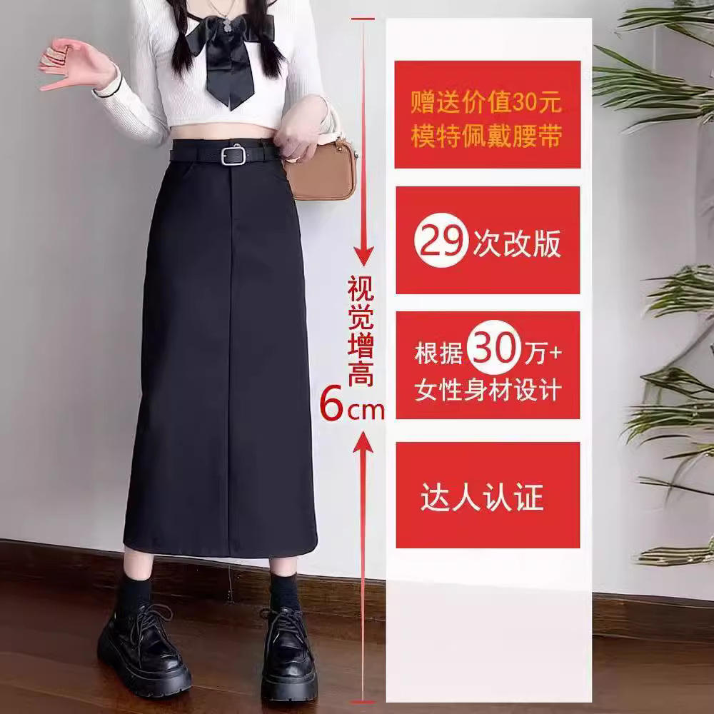 西装半身裙女中长款高腰包臀裙秋季新款A字裙裙子直筒长裙潮