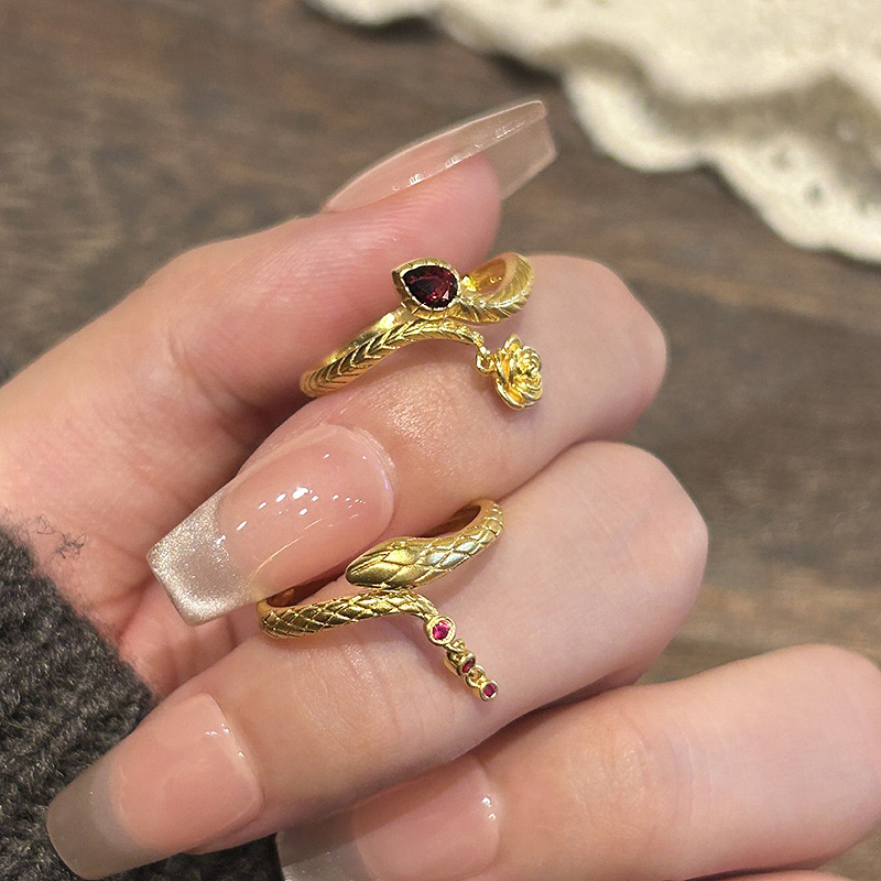 小红书爆款生肖蛇形本命年戒指古法重工玫瑰灵蛇流苏指环