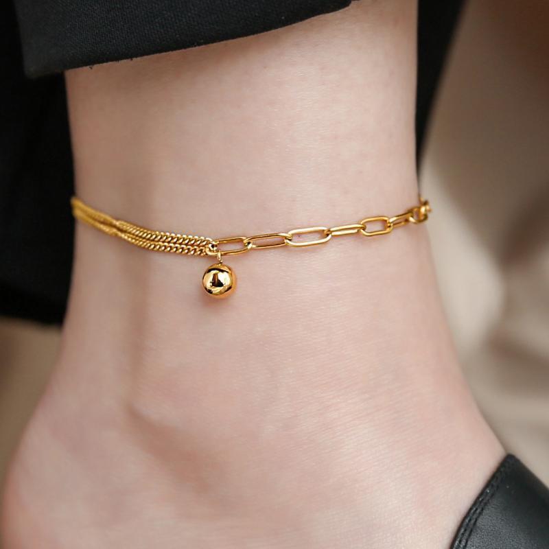 高级感小众金色拼接链条金球脚链女镀18K金不掉色轻奢ins风夏礼物