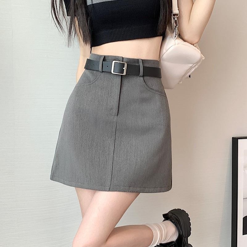 气质防走光a字裙开叉包臀半身裙女大码胖mm小众学院西装短裙子夏