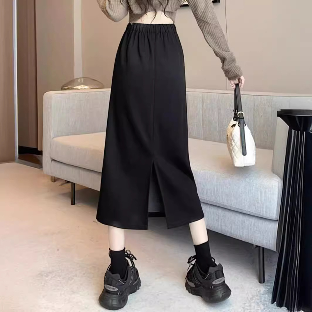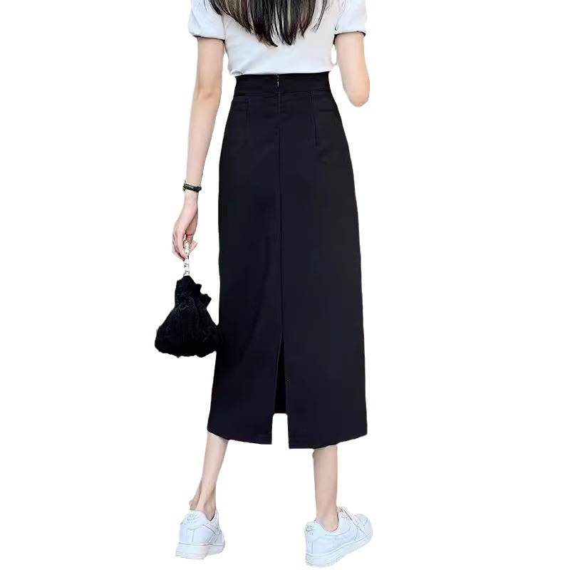 大码春夏秋胖mm高腰西装半身裙女a字显瘦设计感开叉遮胯黑色裙子