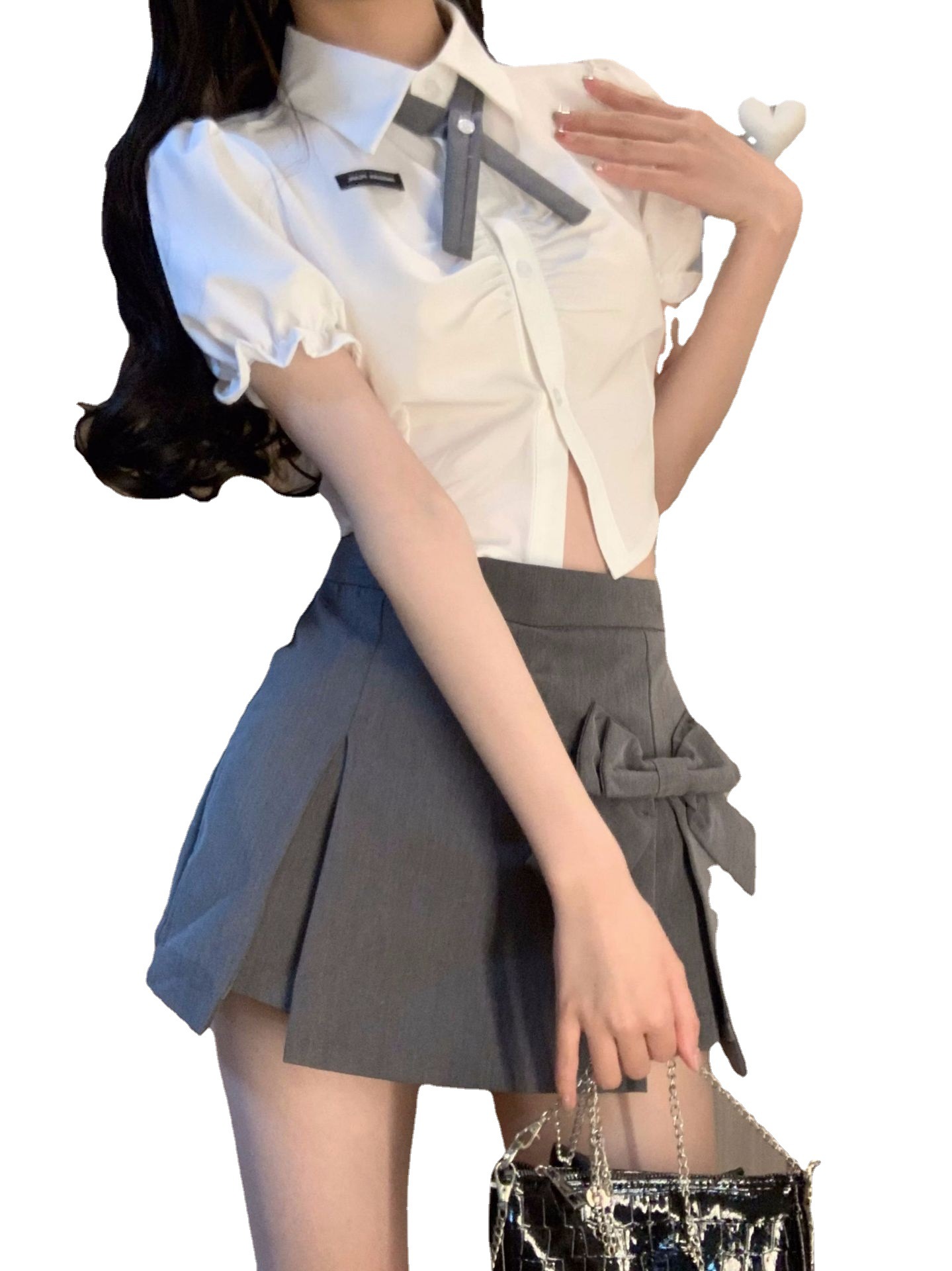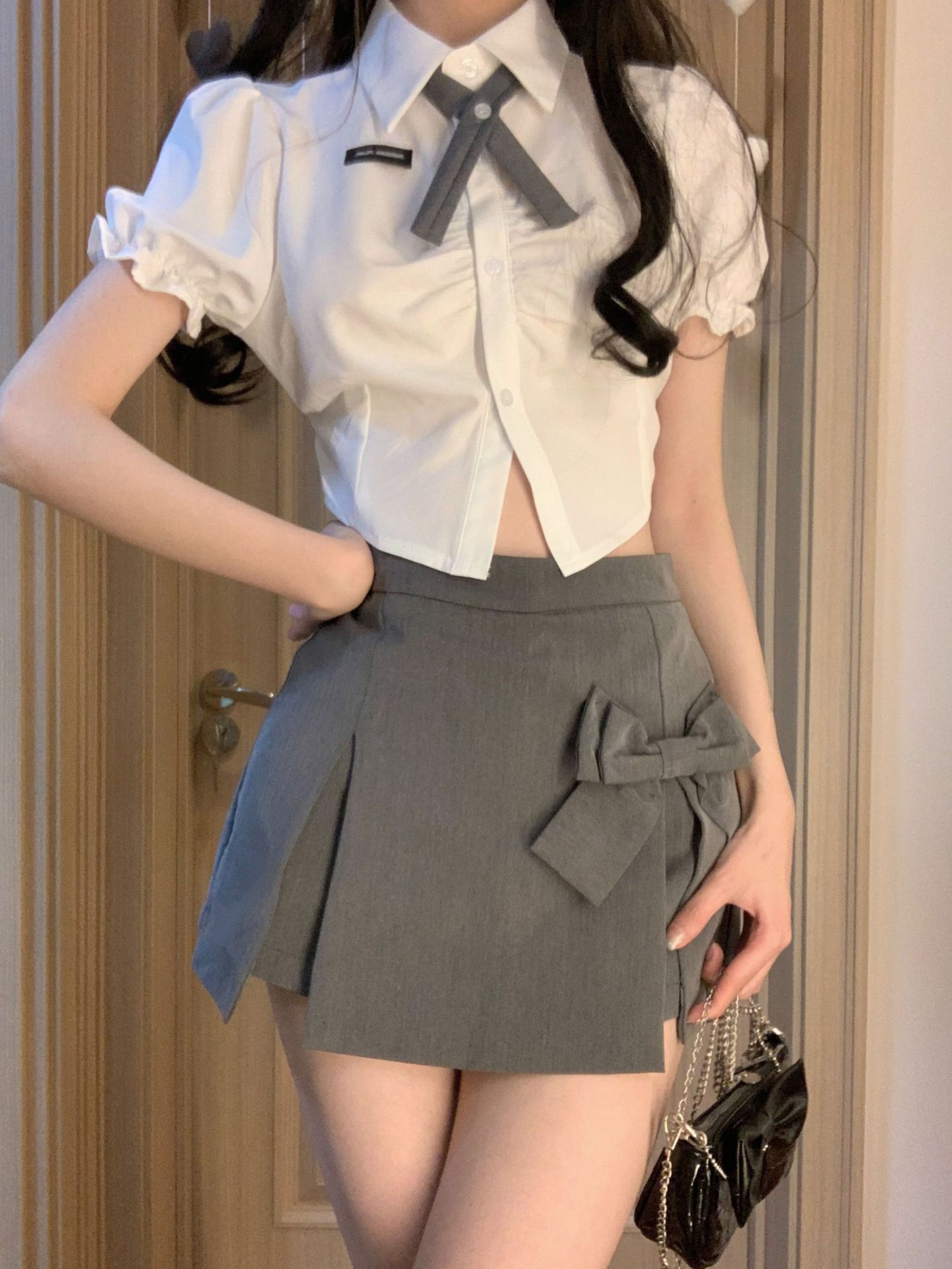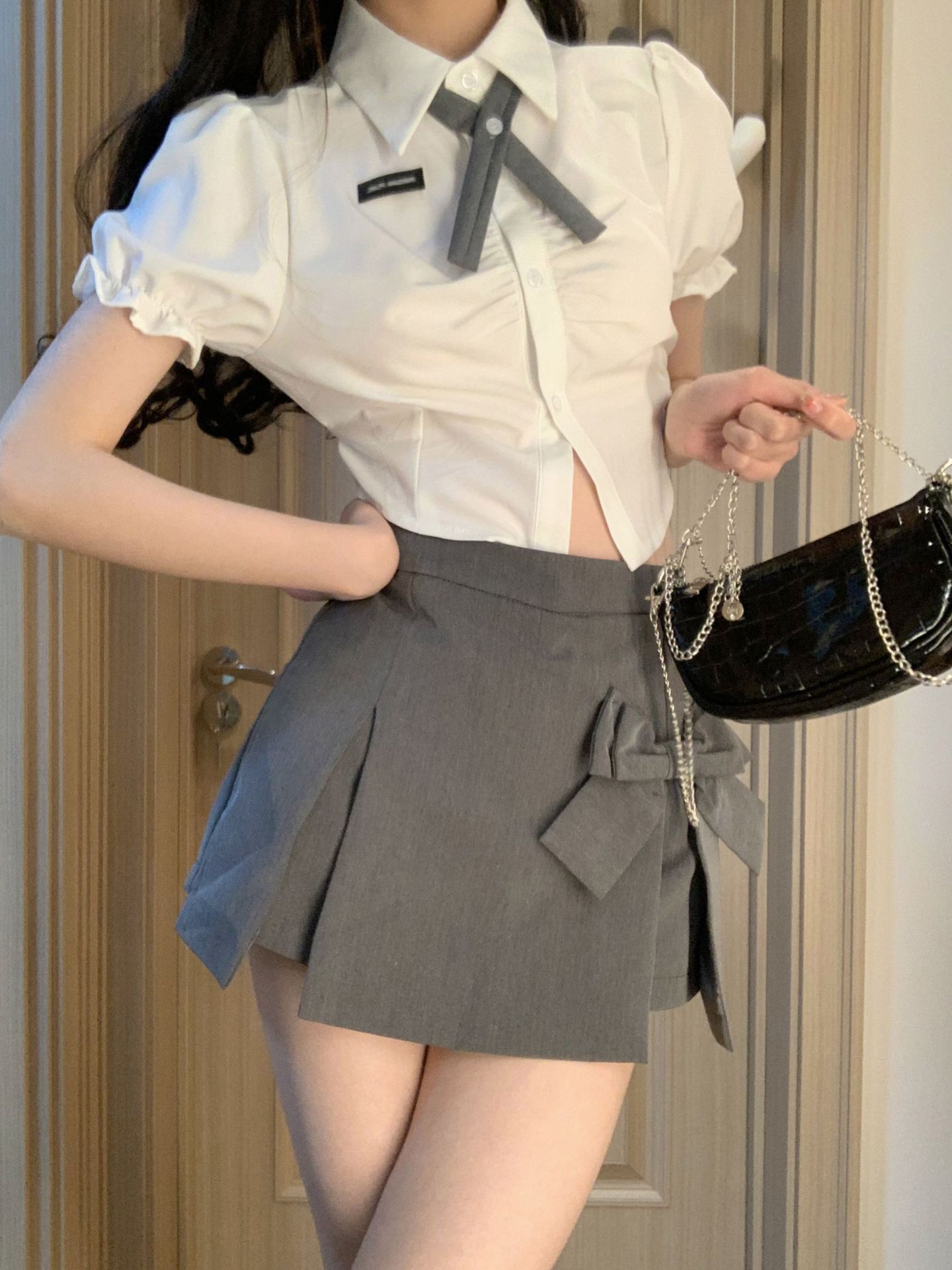 减龄蝴蝶结半身裙女生夏季设计感西装高腰短裙子a字裤裙独特别致