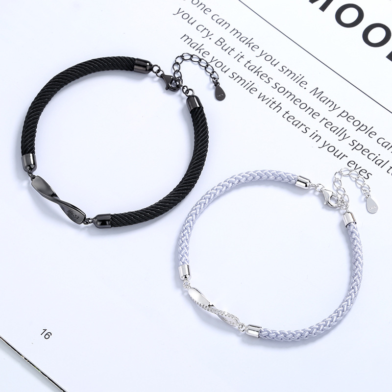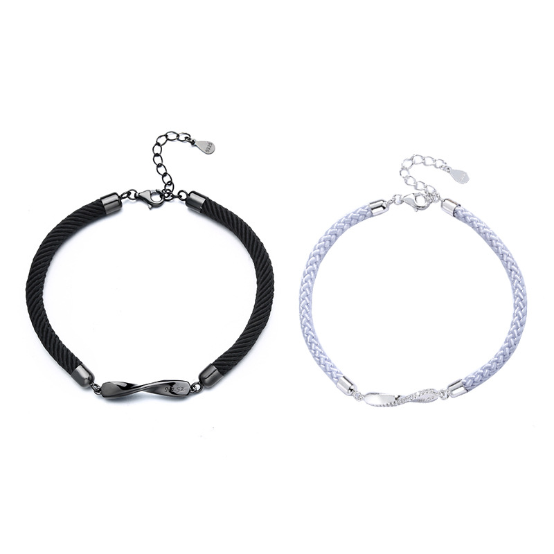 莫比乌斯情侣手链男女生一对925纯银小众编织手绳情人节礼物饰品