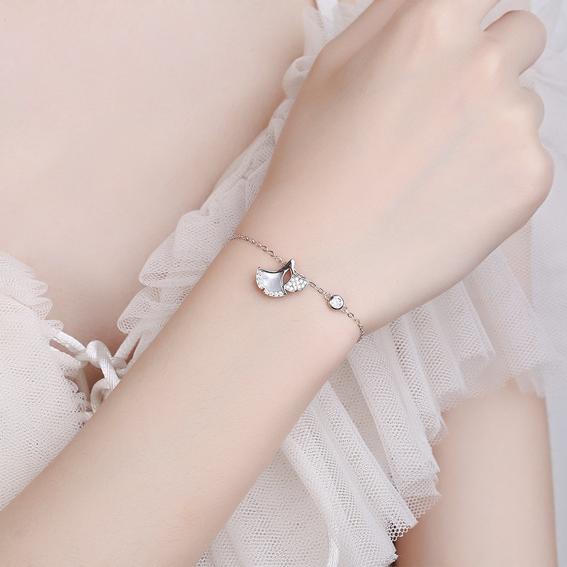 925纯银一贝子手链女韩版简约ins小众设计白贝母扇形手饰七夕礼物