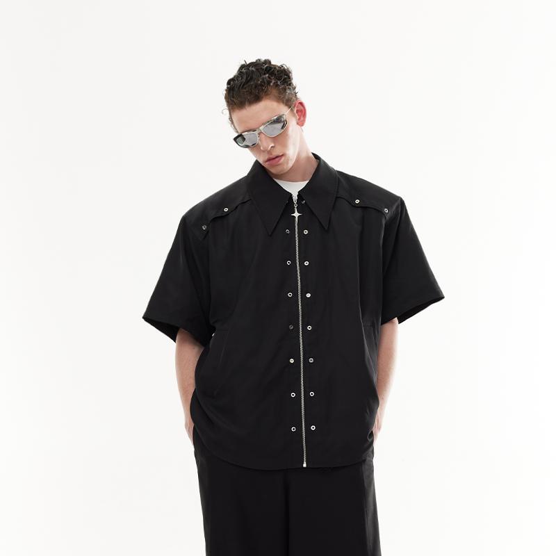 夏季新款衬衫男生轻奢短袖中式高级设计感小众慵懒风痞帅潮牌衬衣