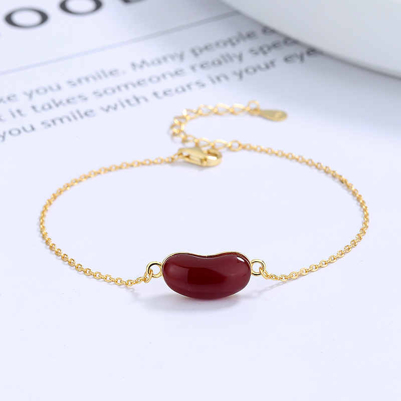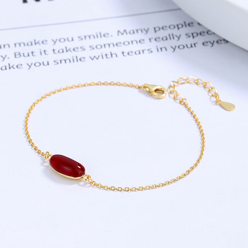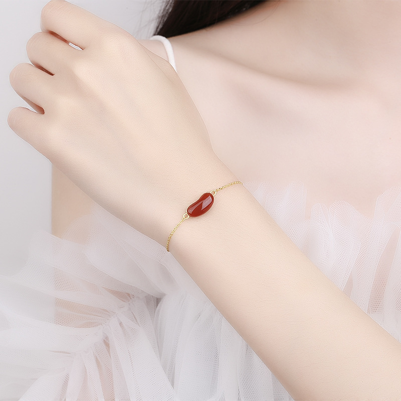 s925纯银相思红豆手链女ins韩版高级感红玛瑙简约个性闺蜜手饰品