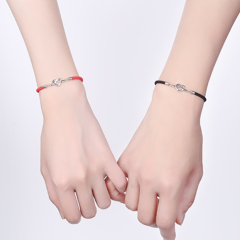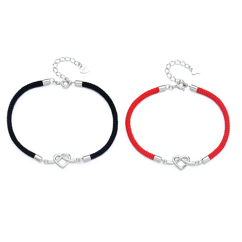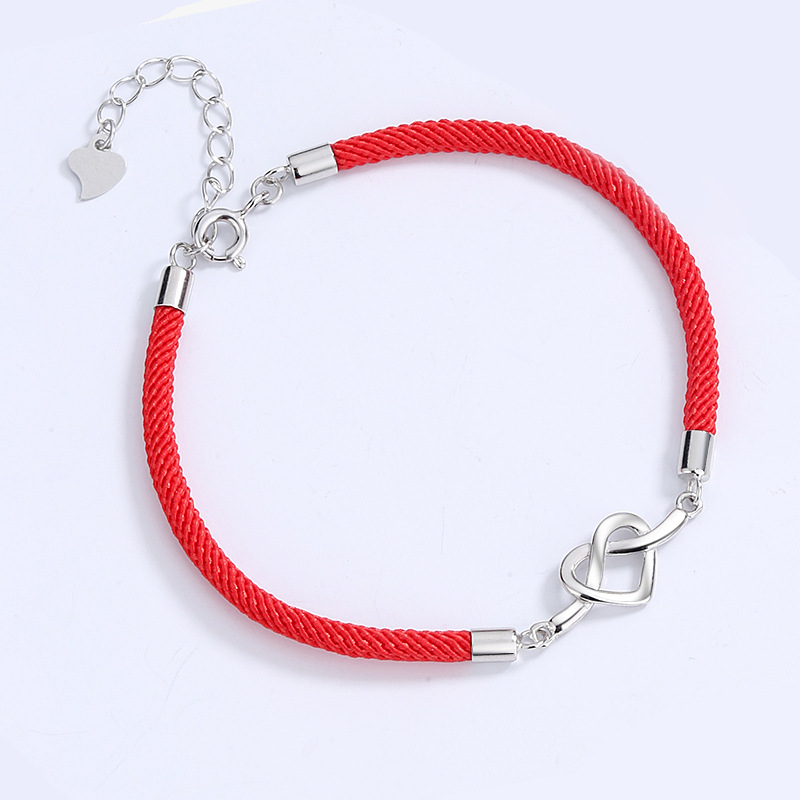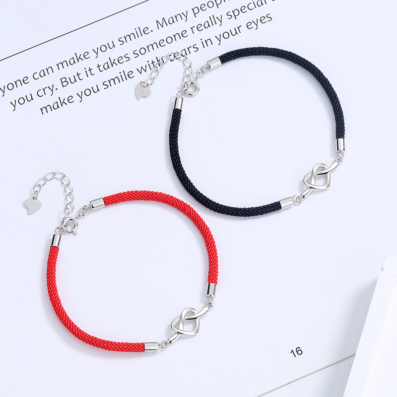 s925纯银永结同心爱心形手链情侣男女生小众设计高级感编织手红绳