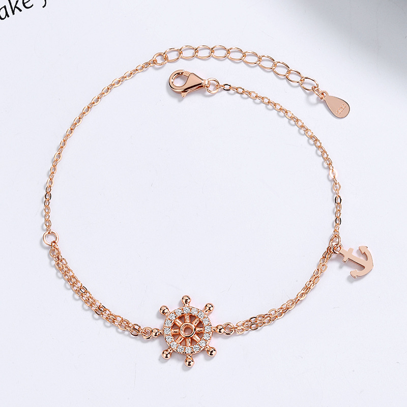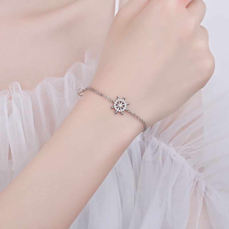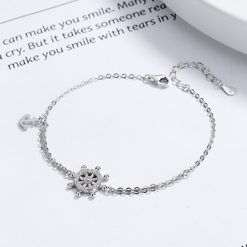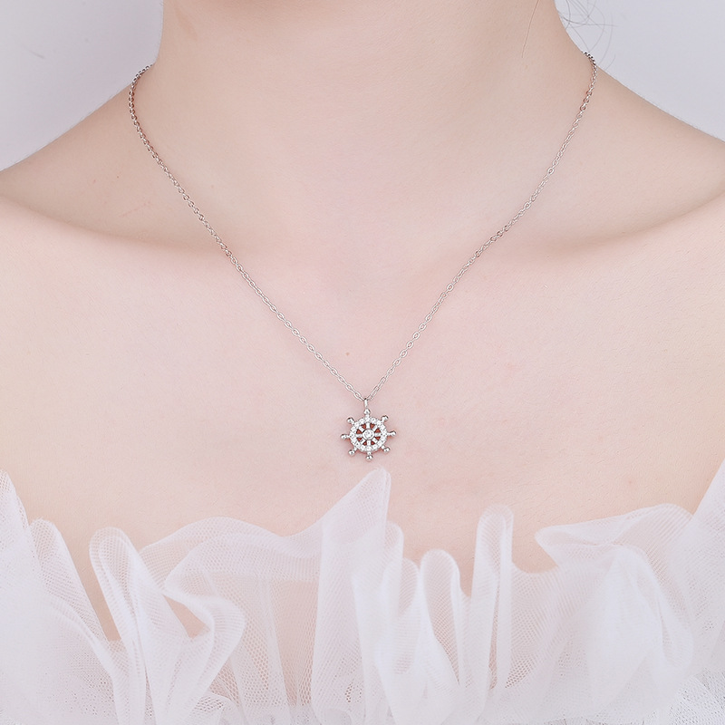 s925纯银星盘船舵项链小众设计感锁骨链个性手链女ins首饰品套装