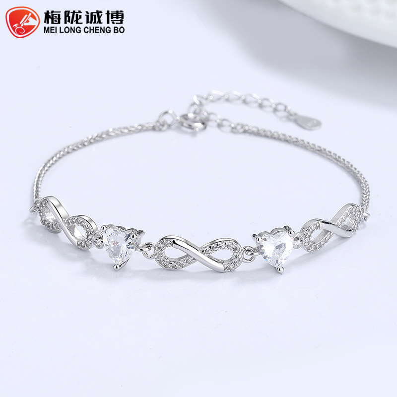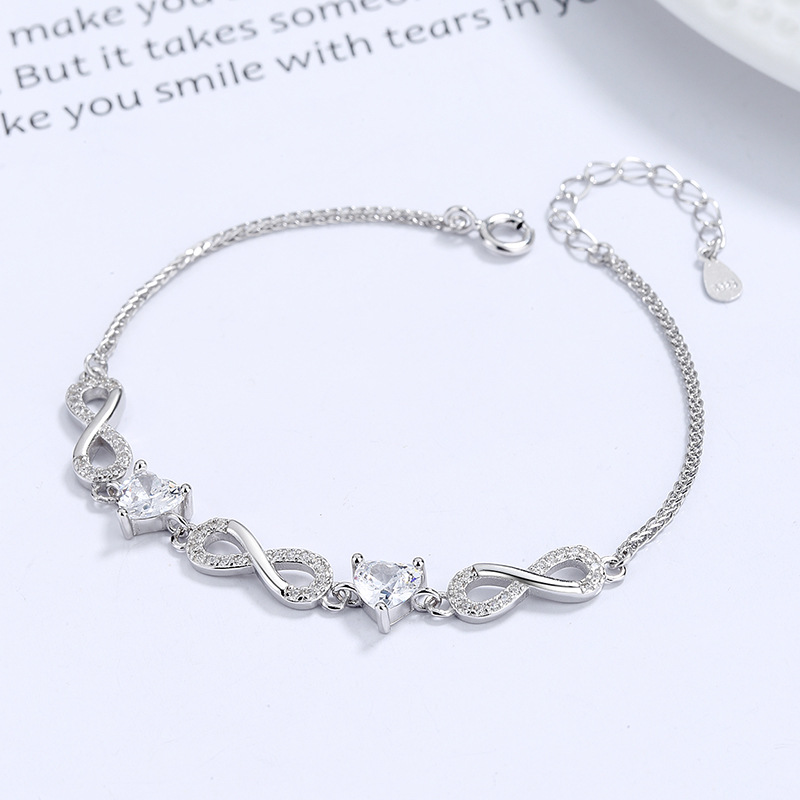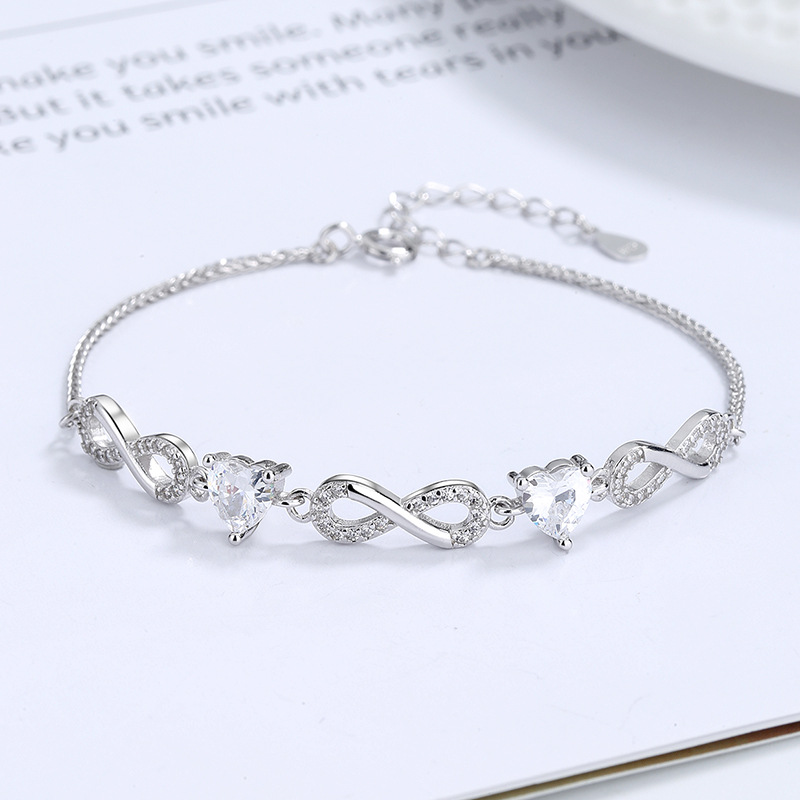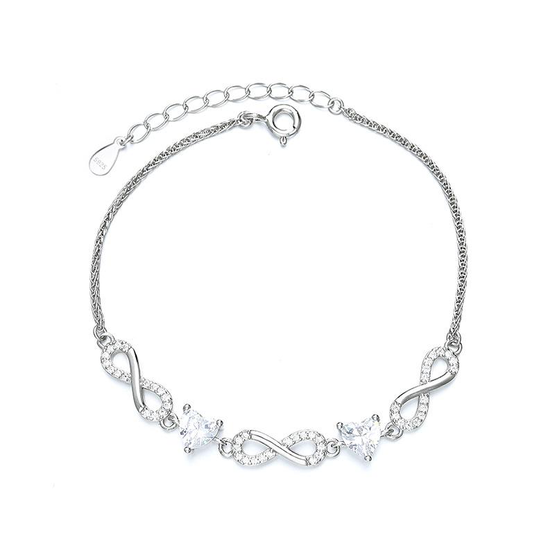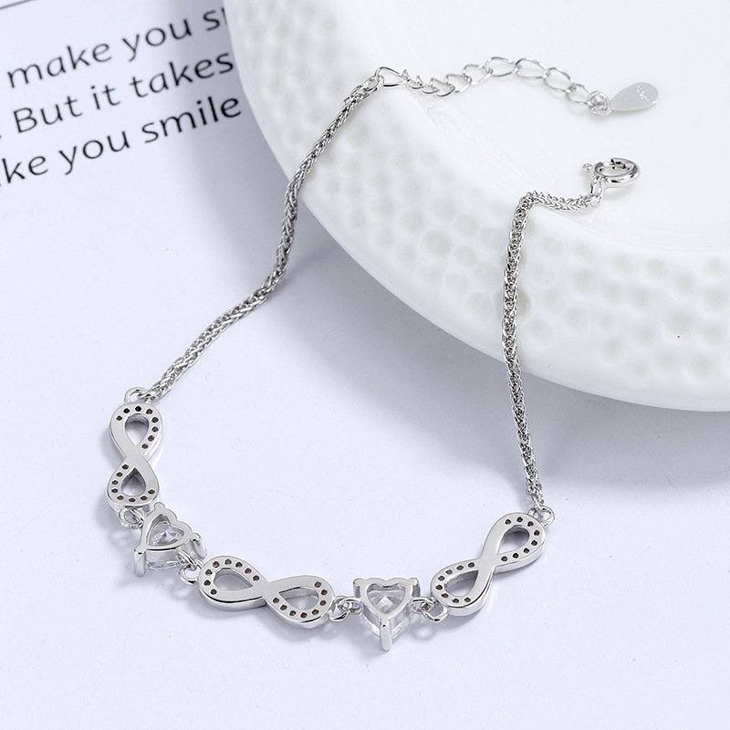 925纯银8字爱心锆石手链女个性无限符号数字手饰品欧美亚马逊跨境